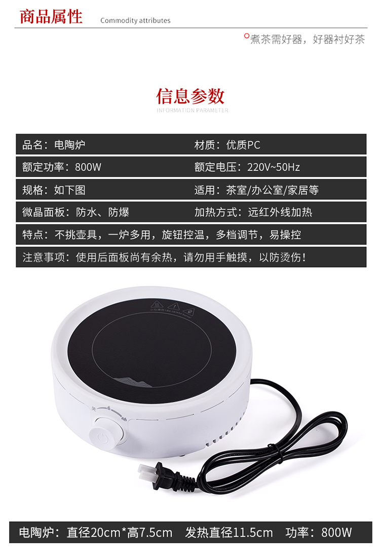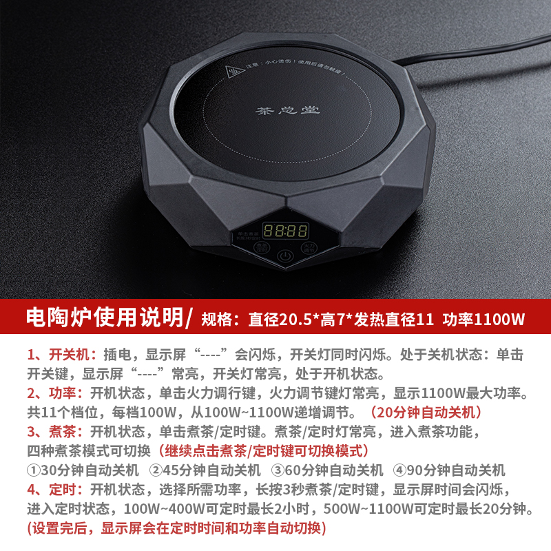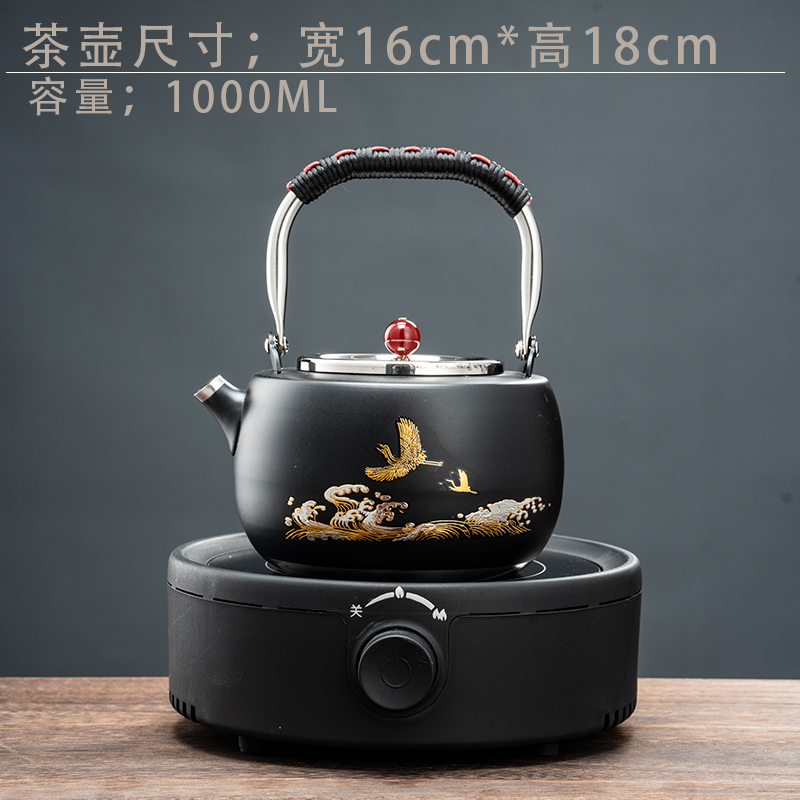 • 전기 세라믹 스토브 [블랙] + 측면 손잡이 자단 차 메이커