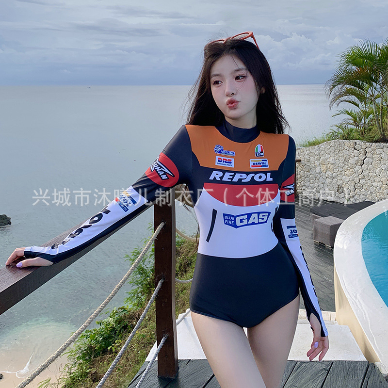 도매 긴 소매 선 스크린 원피스 서핑 다이빙 세트 수영복 여성 배꼽 덮인 해변 온천 휴가 보수적 인 삼각형 수영복스토어 가기