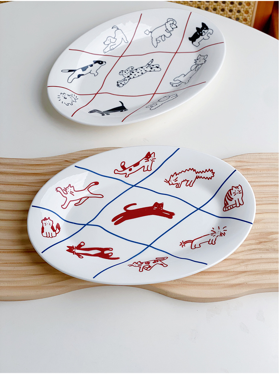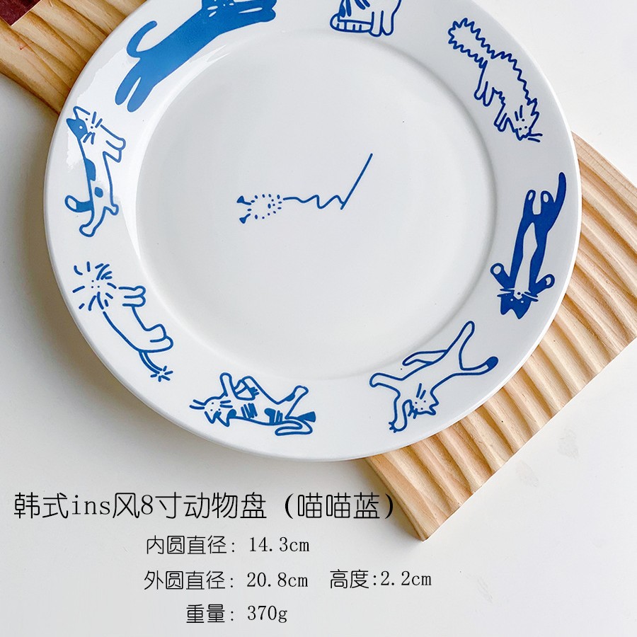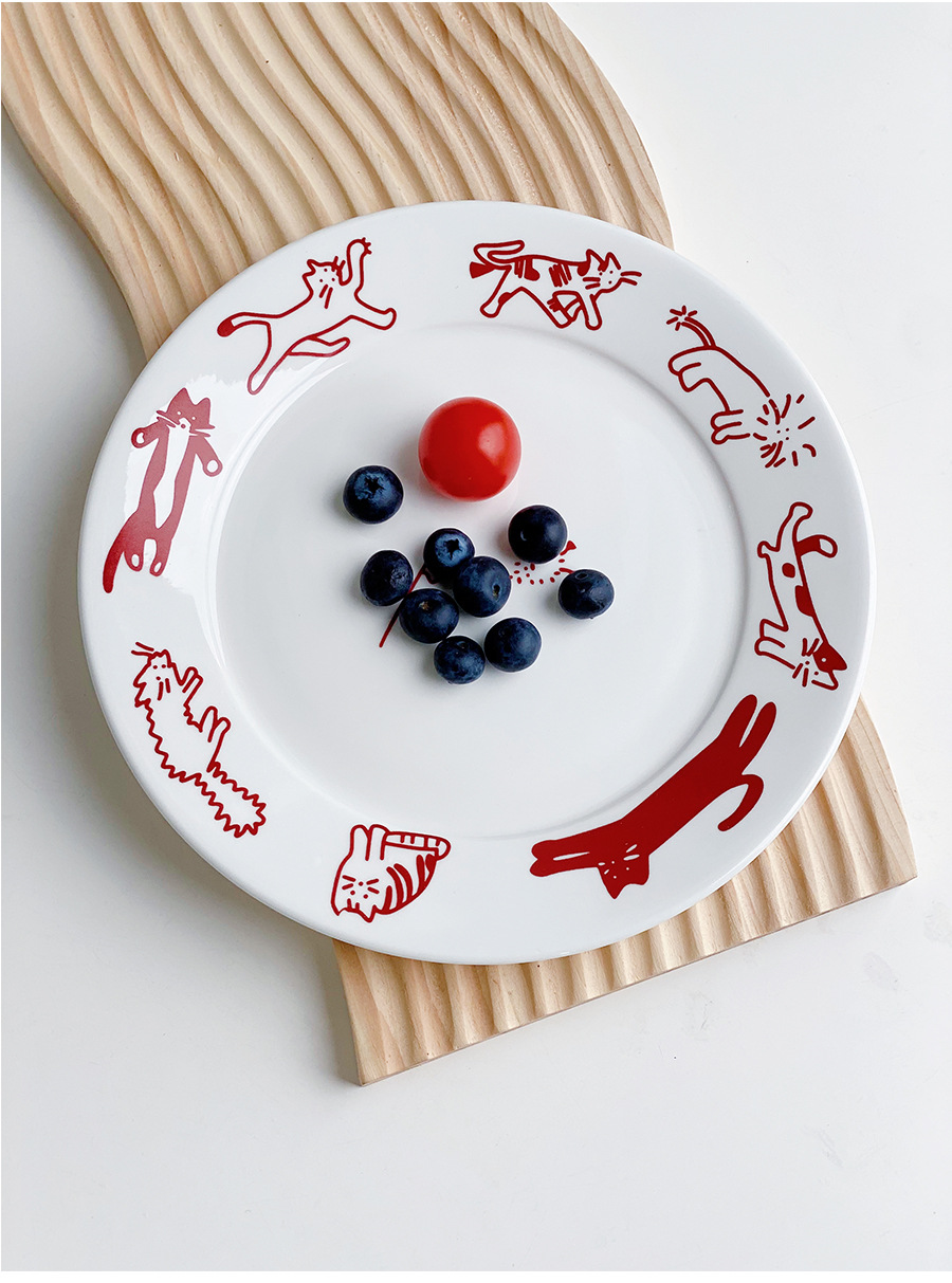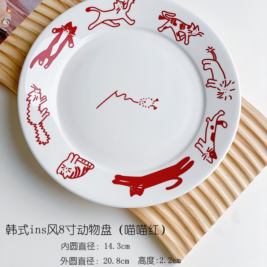 한국 스타일 Ins 스타일 귀여운 인터넷 인기있는 새끼 고양이 강아지 세라믹 디저트 플레이트 케이크 서양 음식 플랫 플레이트 파그 과일 디스크