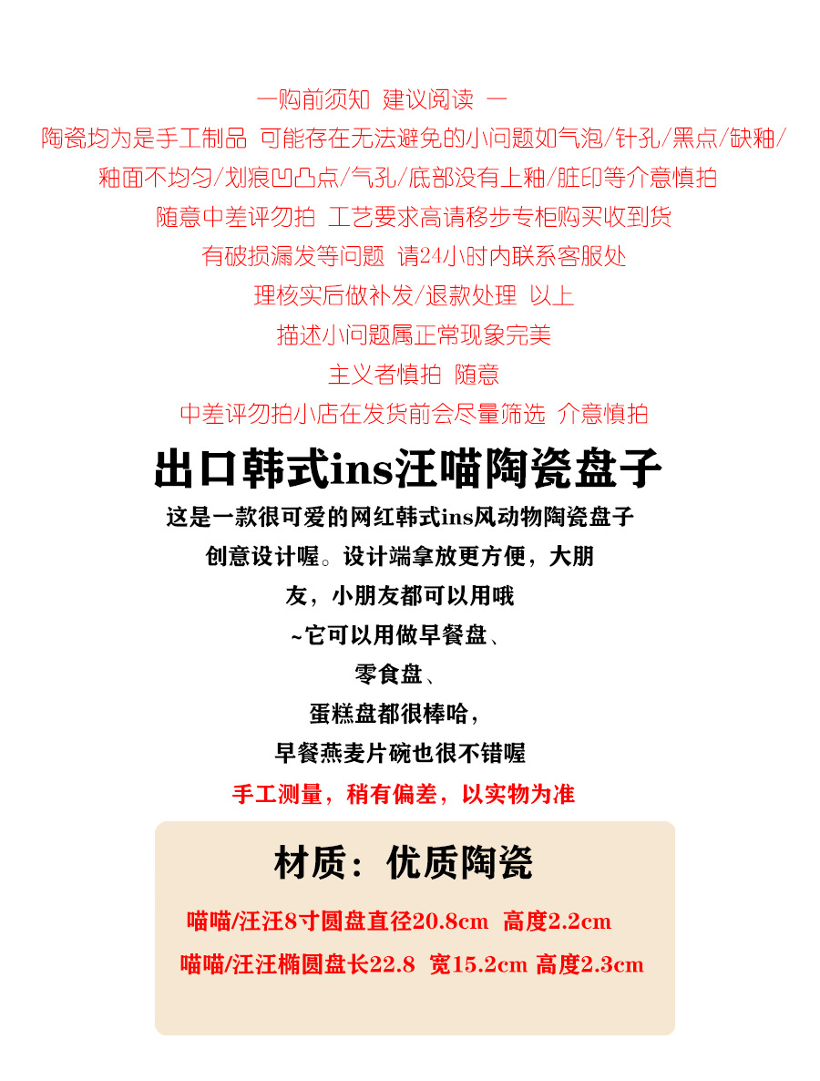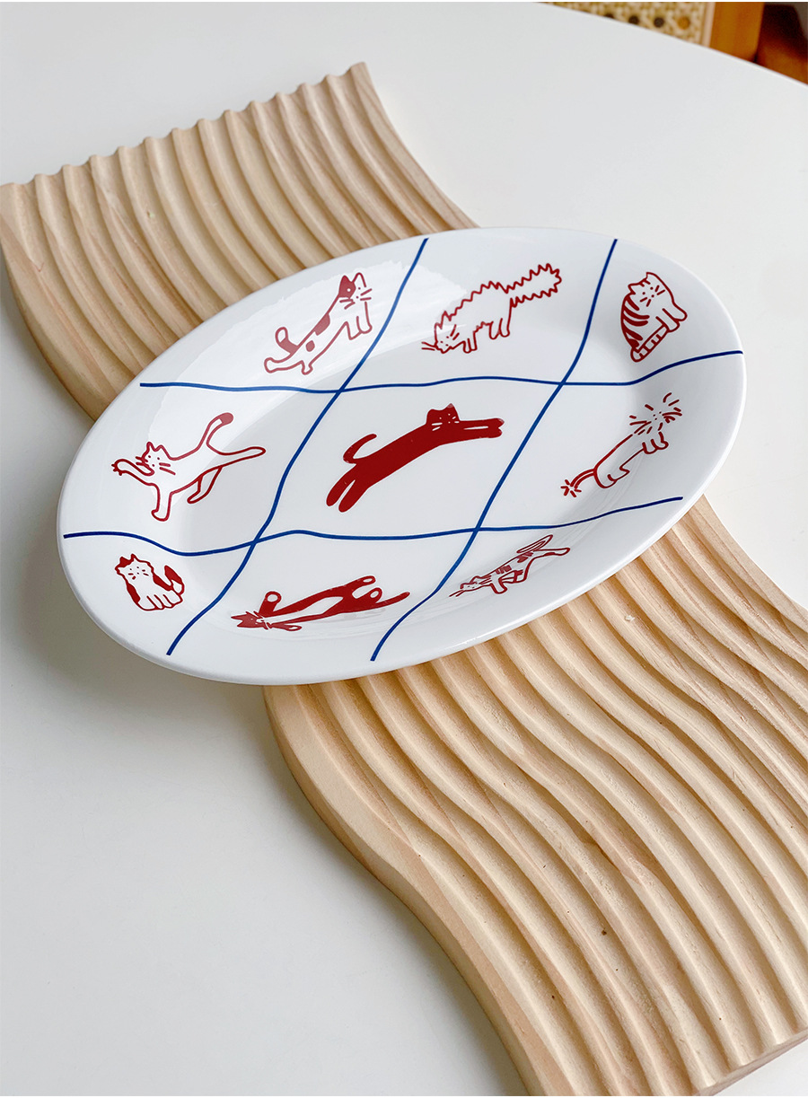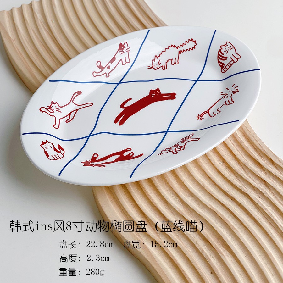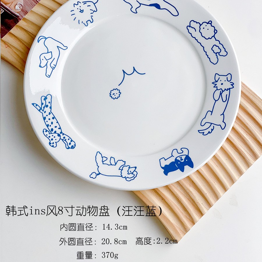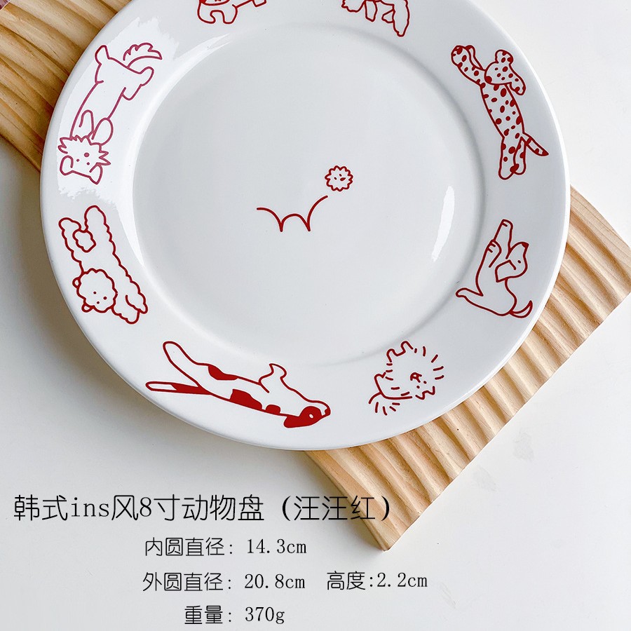 한국 스타일 Ins 스타일 귀여운 인터넷 인기있는 새끼 고양이 강아지 세라믹 디저트 플레이트 케이크 서양 음식 플랫 플레이트 파그 과일 디스크