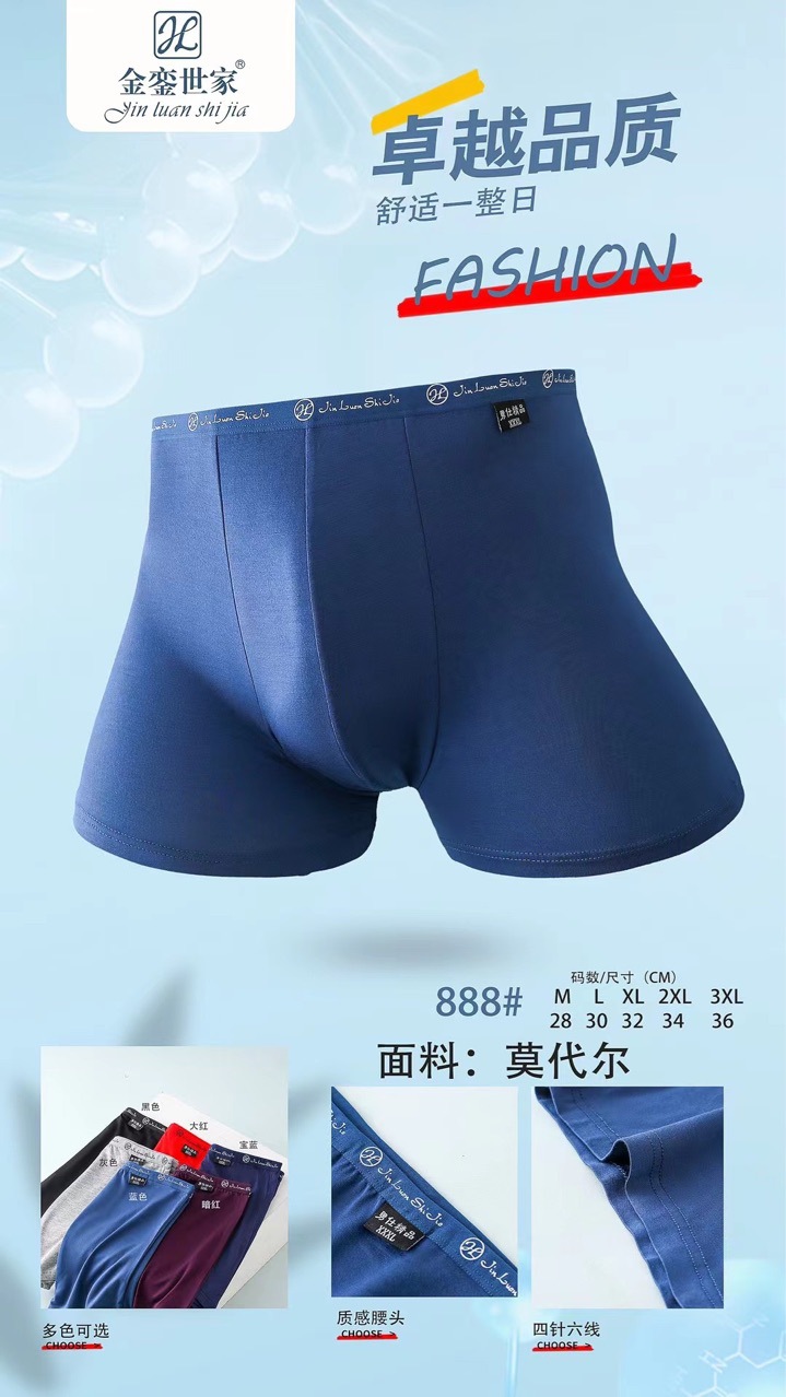 Jinluanshijia 888 남자 복서 대나무 섬유 통기성 편안한 중간 허리 청소년 남성 복서 팬티 도매스토어 가기