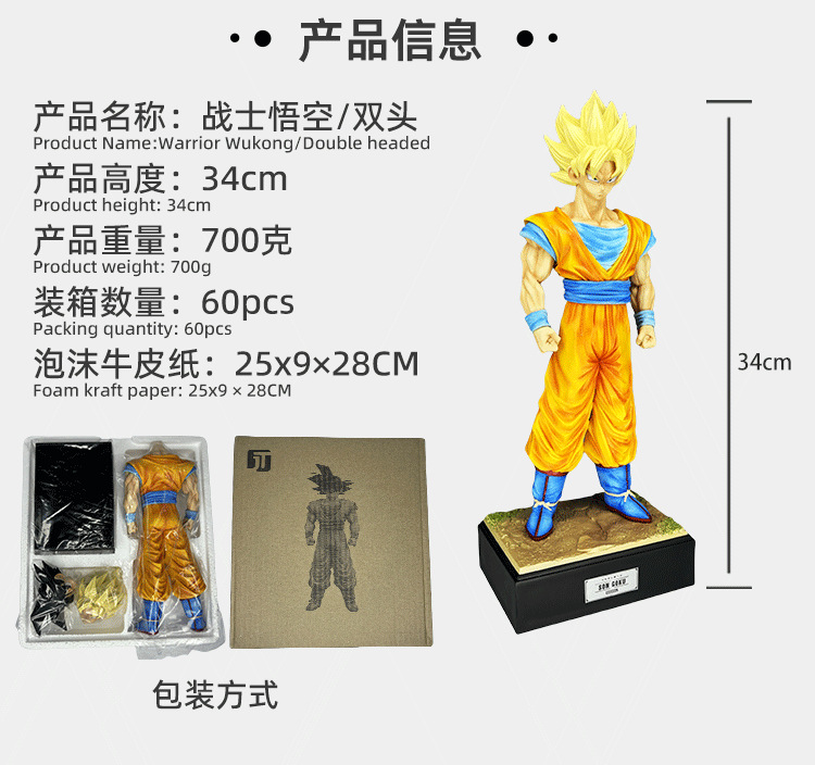 드래곤 볼 Z 전사 주니어 슈퍼 무한 원숭이 킹 양두 조각 손으로 만든 모델 정적 동상 장식품 재고 도매스토어 가기