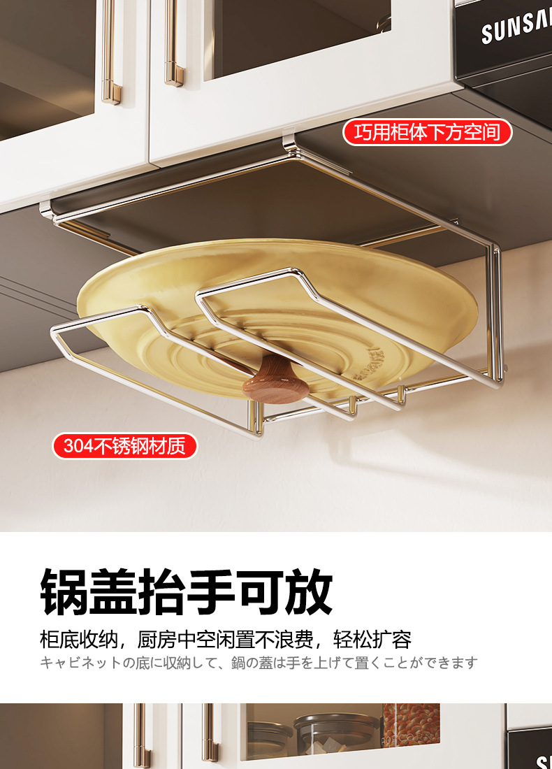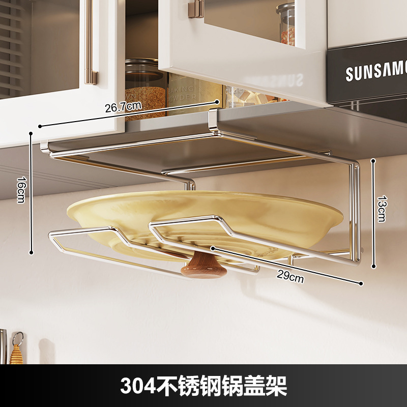 304 스테인레스 스틸 냄비 커버 랙 캐비닛 교수형 스토리지 랙 주방 교수형 캐비닛 냄비 커버 도마 스토리지 펀치 프리스토어 가기