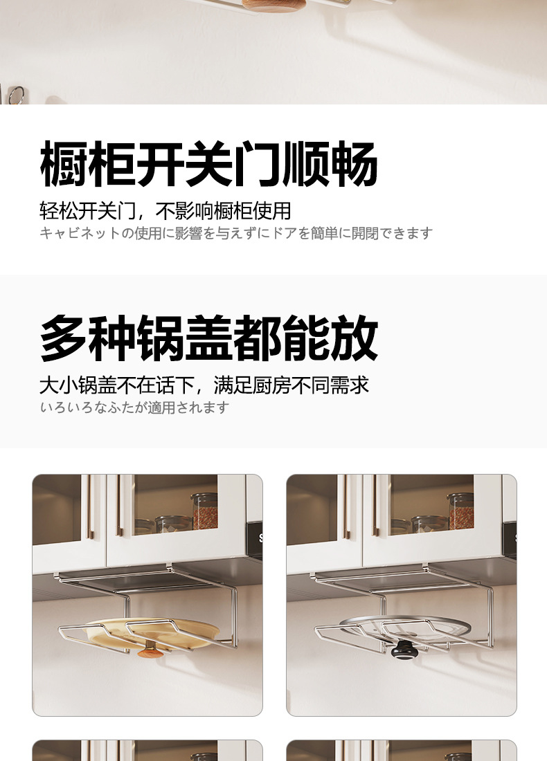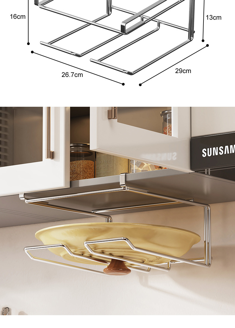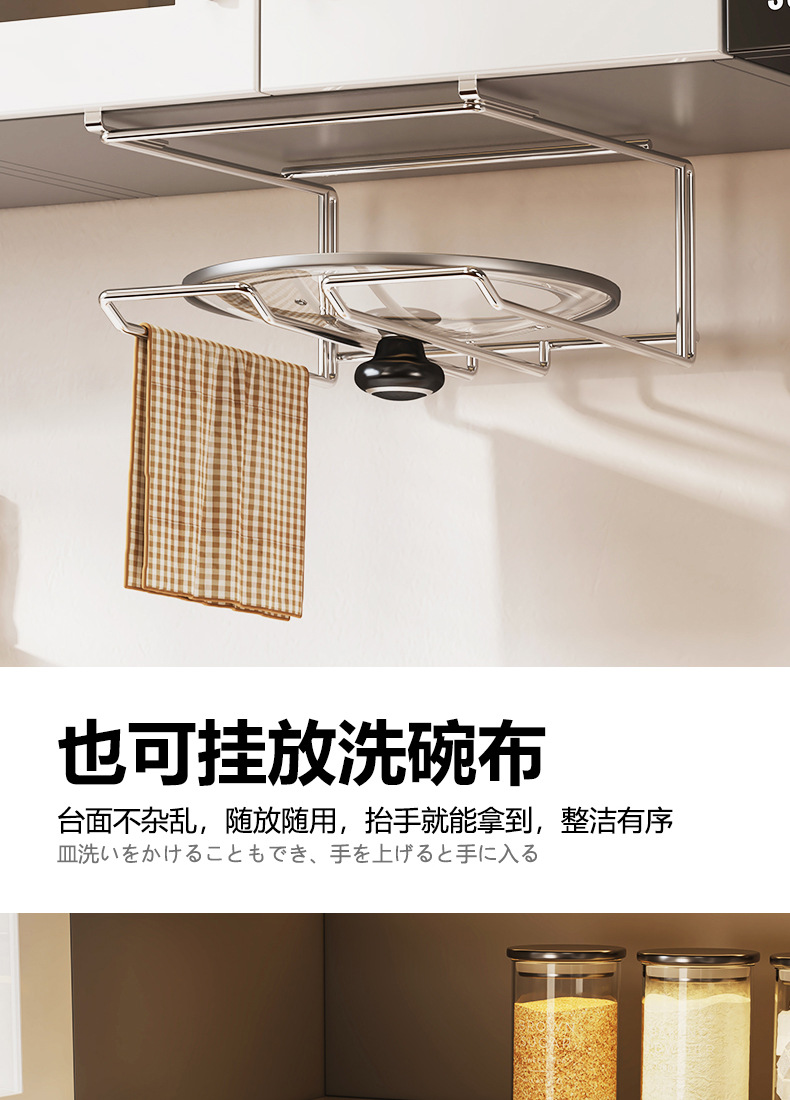 304 스테인레스 스틸 냄비 커버 랙 캐비닛 교수형 스토리지 랙 주방 교수형 캐비닛 냄비 커버 도마 스토리지 펀치 프리