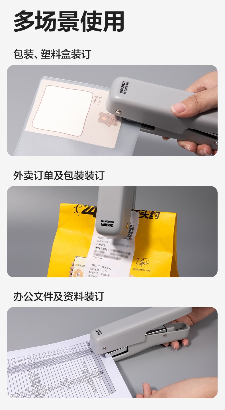 델리 0329PRO 휴대용 스테이플러 휴대용 표준 번호 12 테이크 아웃 포장 청구서 단일 노동 절약 바인딩 기계스토어 가기