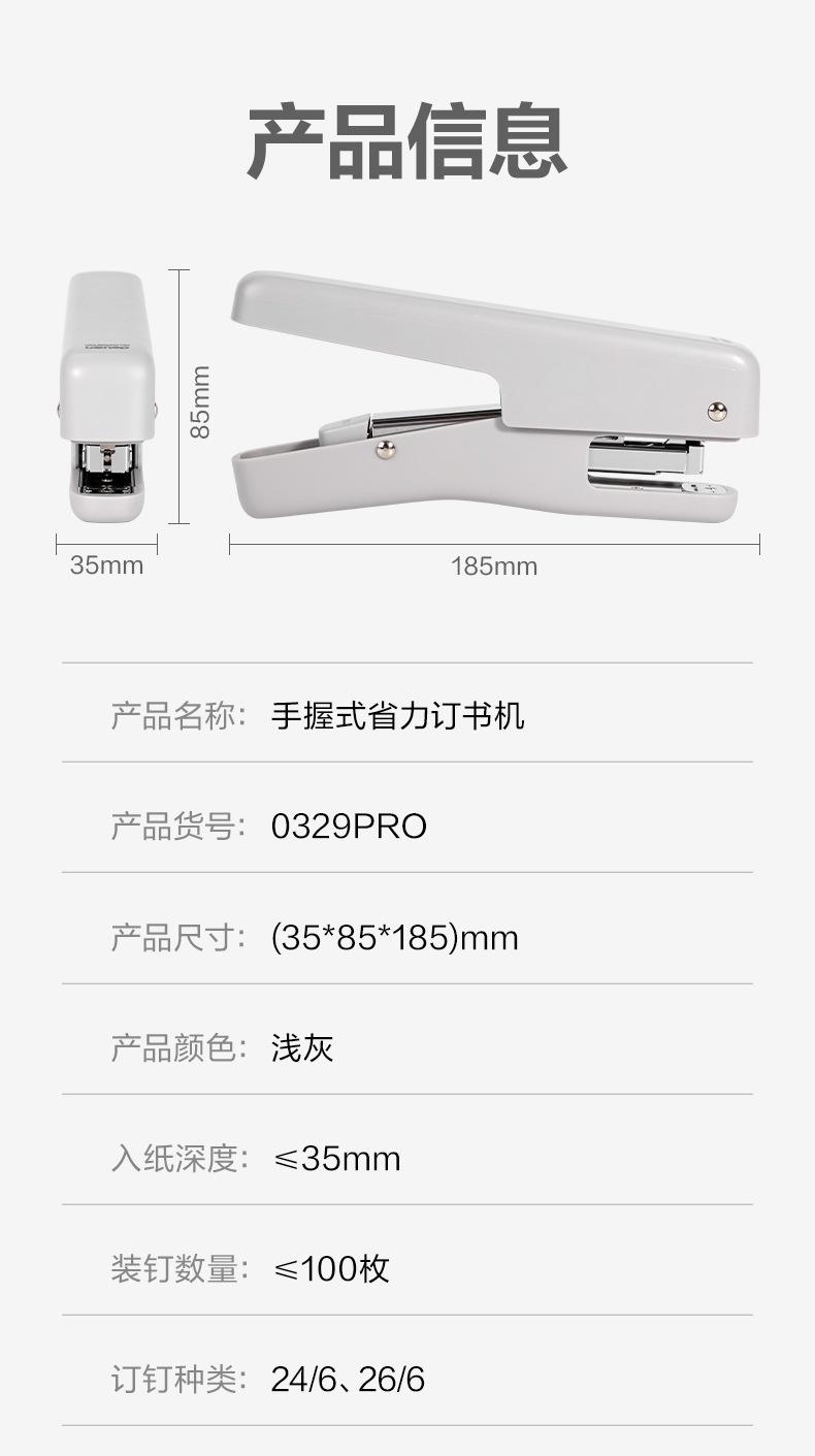 • 0329PRO 노동 절약 핸드 스테이플러 (회색)