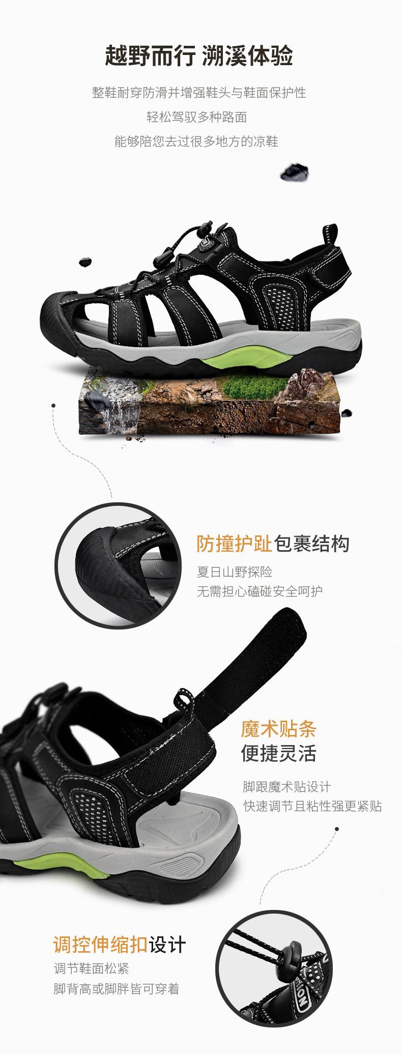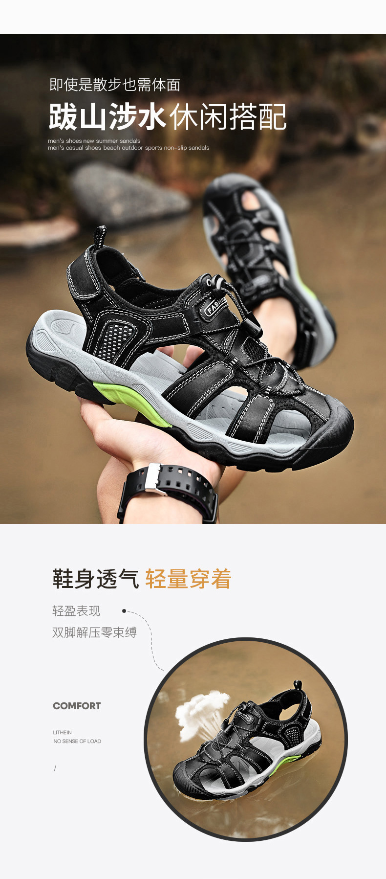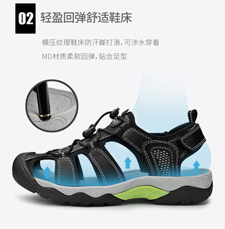 대외 무역 대형 샌들 남성용 야외 비치 샌들 Baotou 샌들 중공 크로스 보더 남성용 통기성 리버 트레이싱 신발