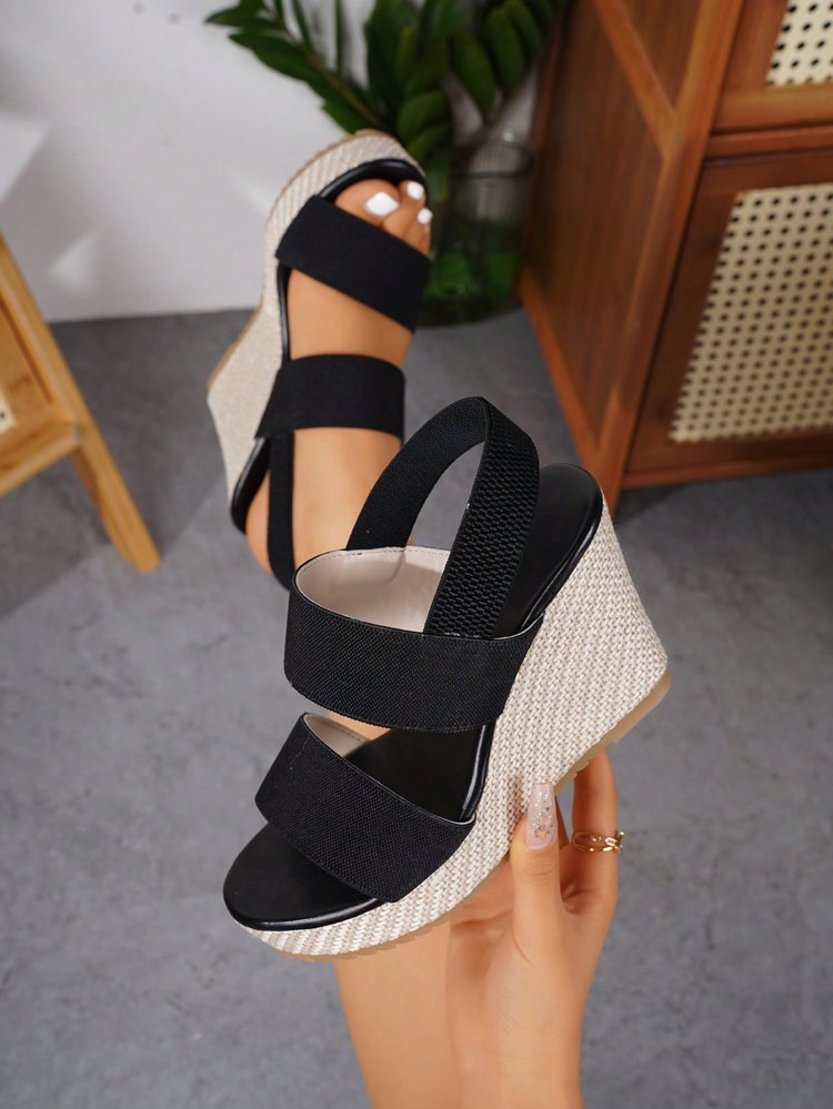 유럽과 미국의 국경 간 여성 신발 2024 여름 하이힐 슈즈 크로스 벨트 두꺼운 하단 플랫폼 웨지 힐 오픈 발가락 샌들스토어 가기