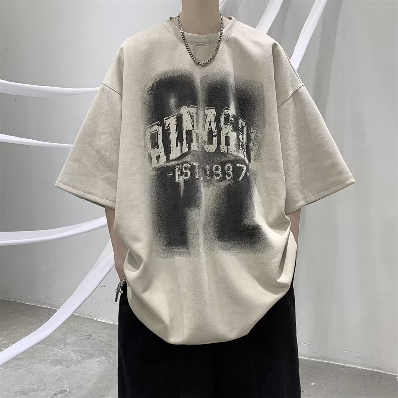 힙합 스웨이드 아메리칸 티셔츠 남자 여름 오버 사이즈 플러스 사이즈 루즈 하프 슬리브 티셔츠 한국식 헤비급 쇼트 티셔츠스토어 가기