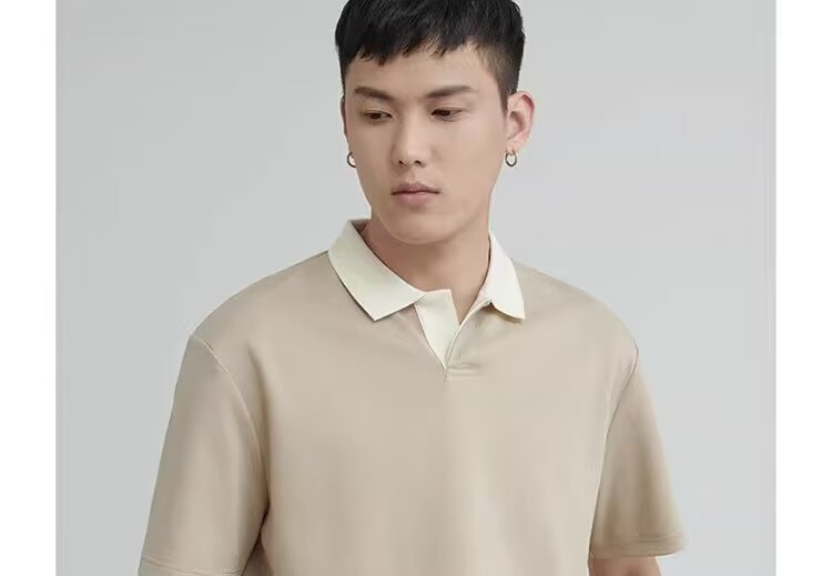 여름 새로운 색상 라르 니트 반팔 폴로 셔츠 남성용 트렌디 브랜드 캐주얼 느슨한 일본 스타일 단색 남성 티셔츠스토어 가기