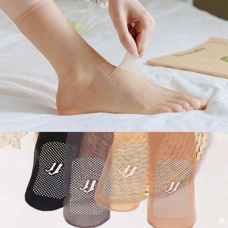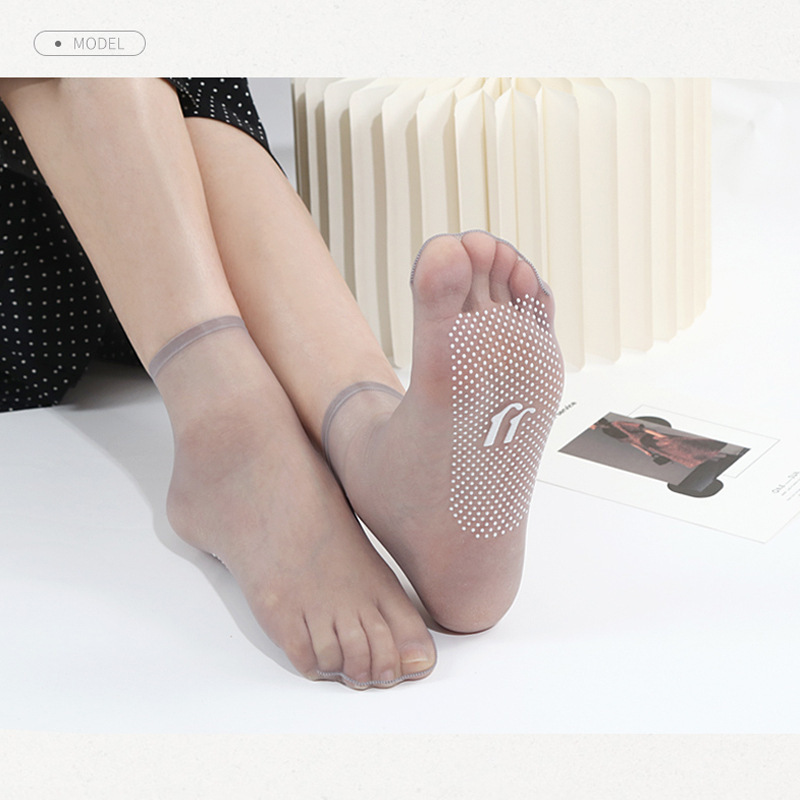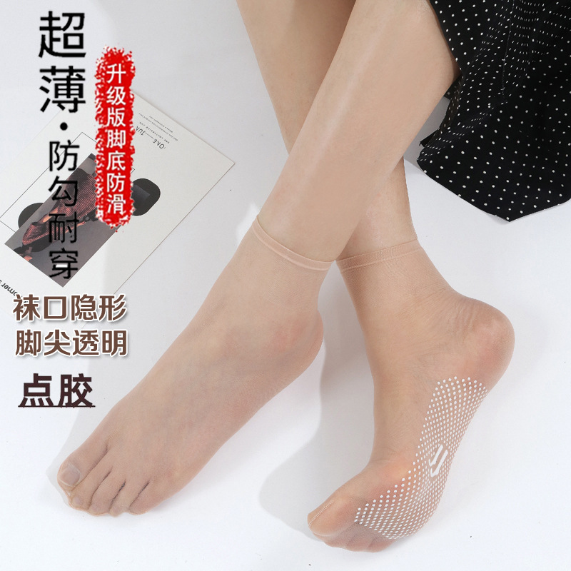 안티 후크 실크 분배 미끄럼 방지 스틸 스타킹 여성의 초박형 보이지 않는 짧은 스타킹 여름 완전 투명 양말 살색 크리스탈 양말스토어 가기