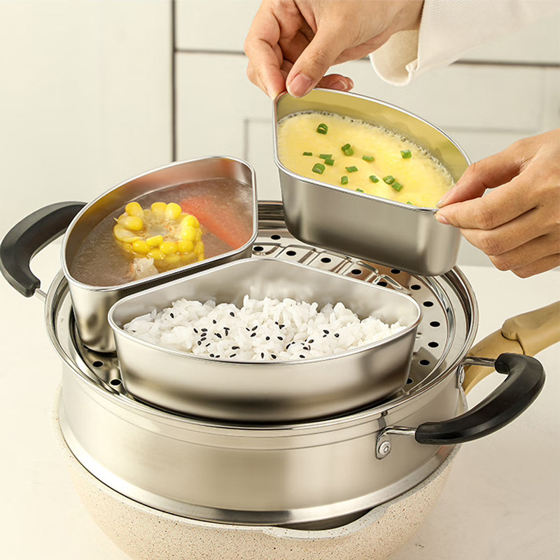 304 스테인레스 스틸 팬 모양의 김이 나는 판 김이 나는 격자 김이 나는 그릇 파티션 김이 나는 상자 밥솥 조합 비 향미 김이 컵 보존 상자