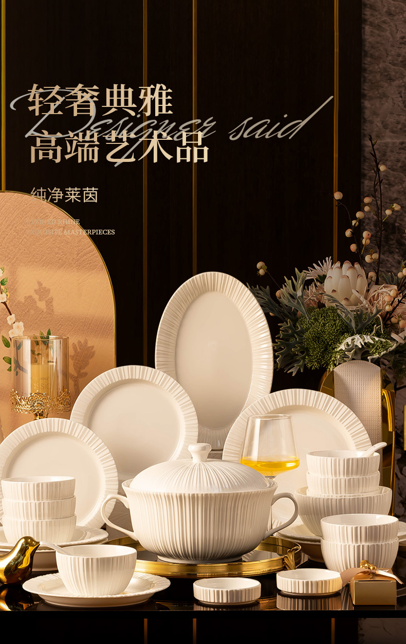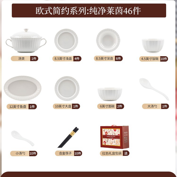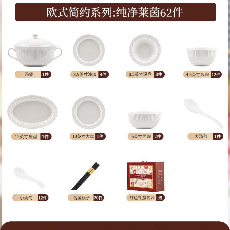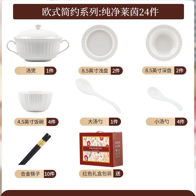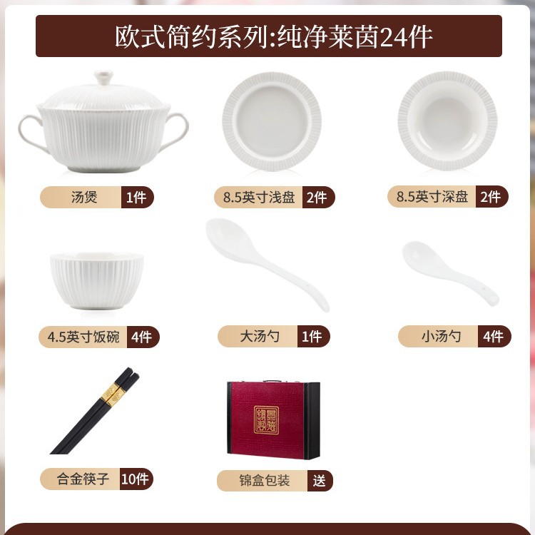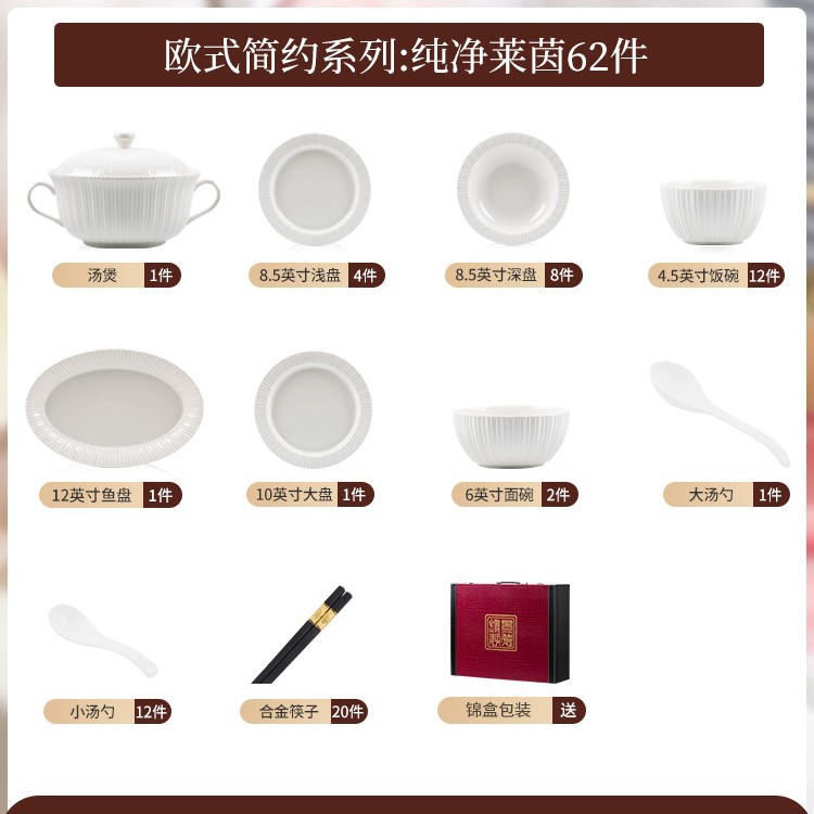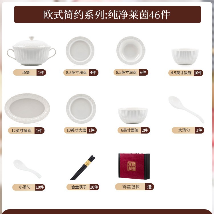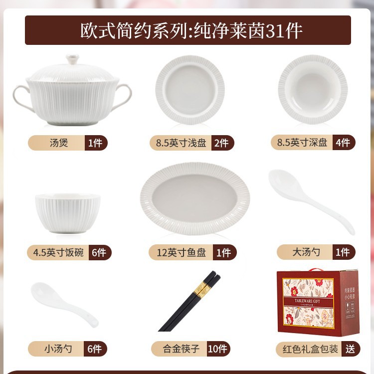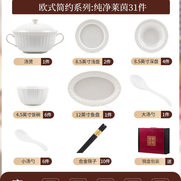강모 공장 직접 유약 컬러 하이 화이트 도자기 그릇 젓가락 세트 간단한 그릇 젓가락 그릇 접시 식기 가정용 선물