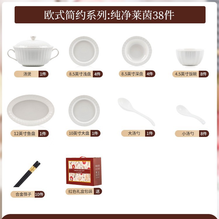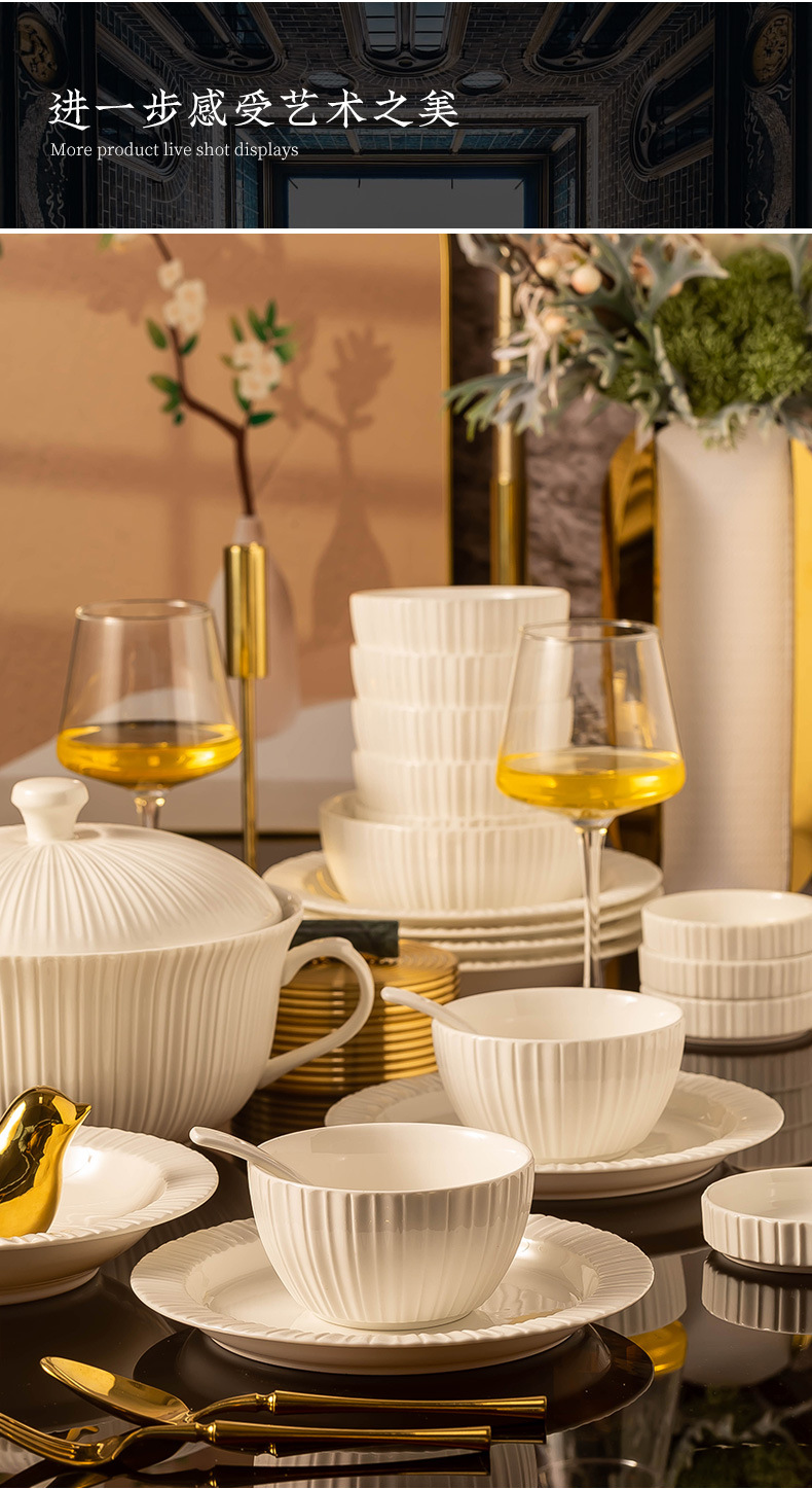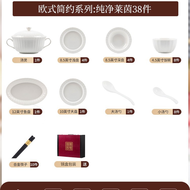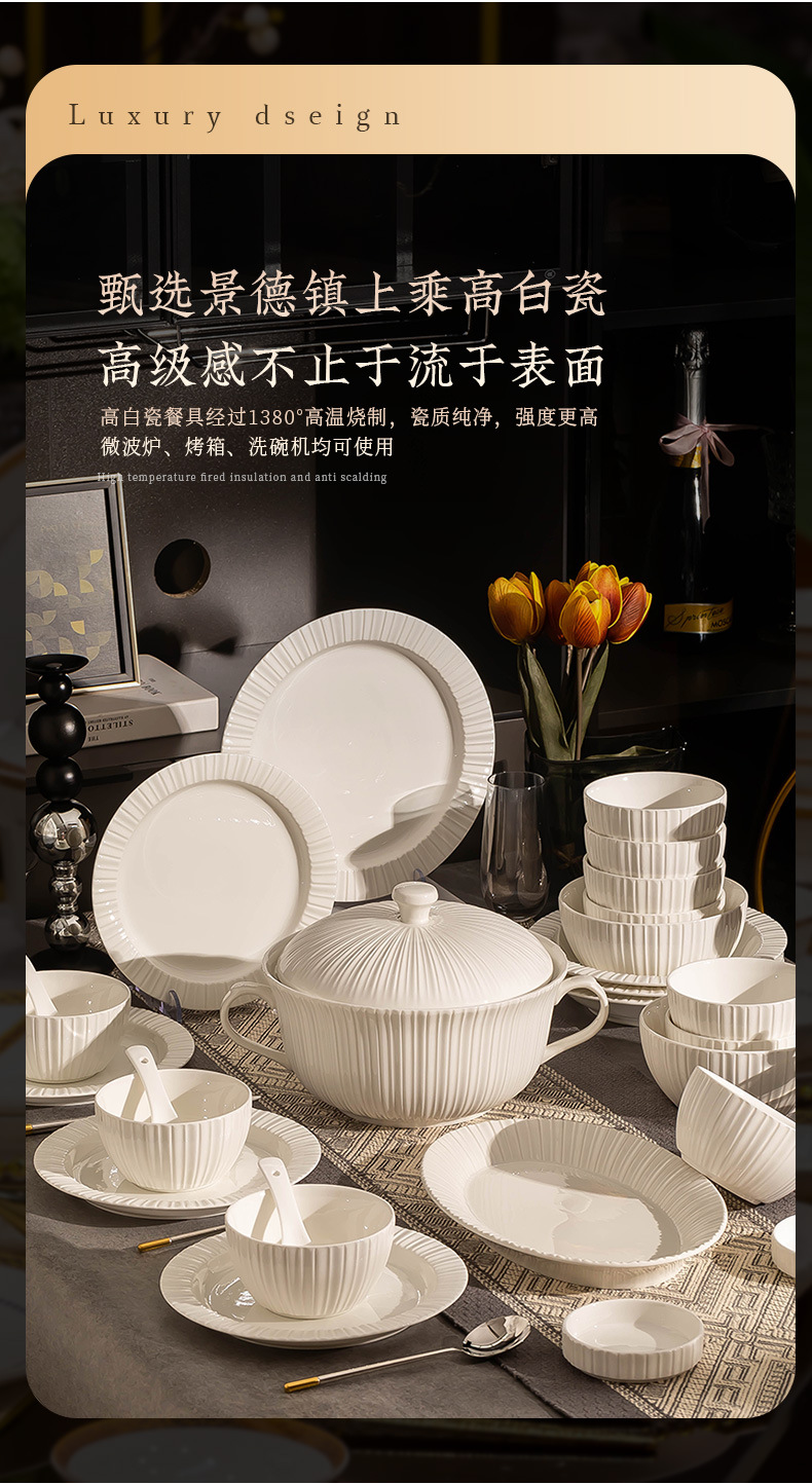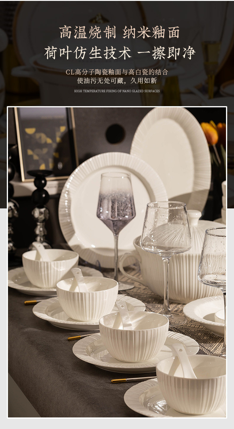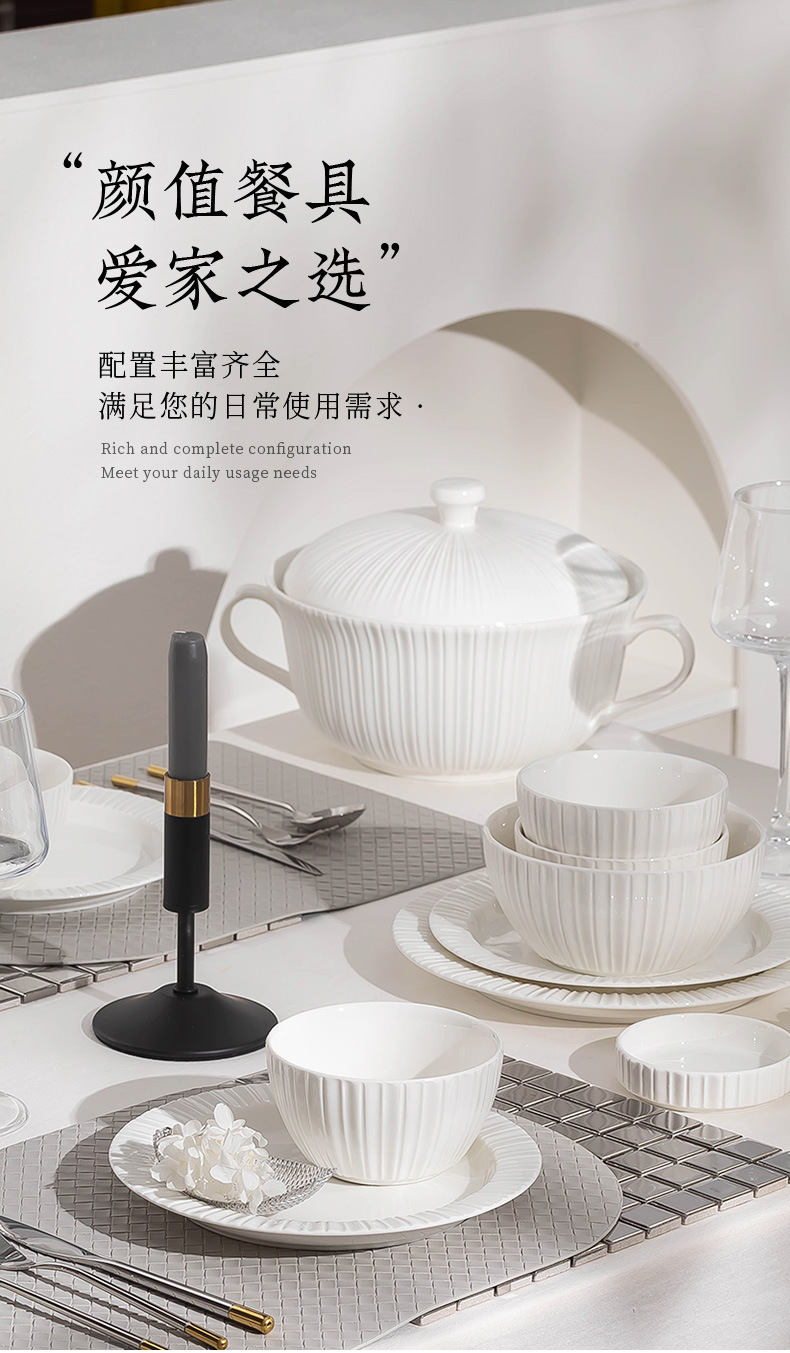 강모 공장 직접 유약 컬러 하이 화이트 도자기 그릇 젓가락 세트 간단한 그릇 젓가락 그릇 접시 식기 가정용 선물스토어 가기