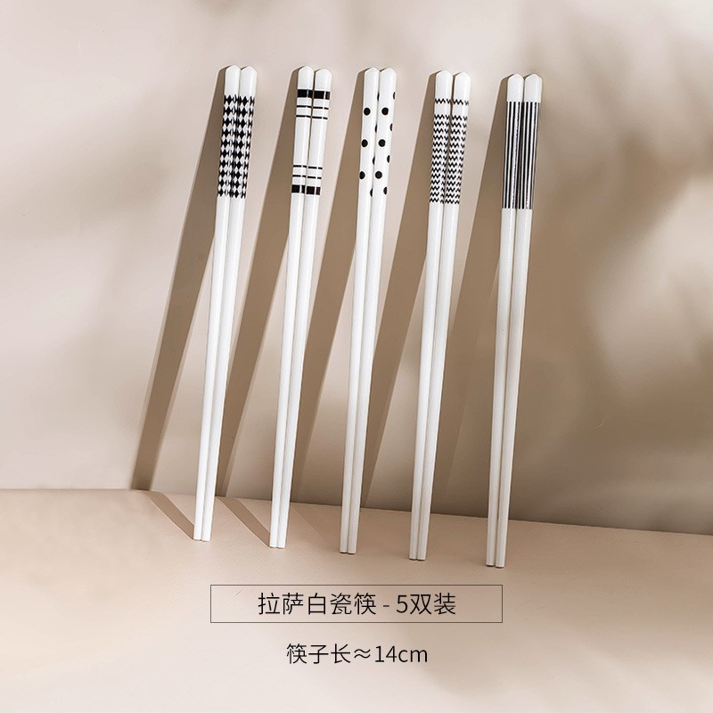 • 순수 라인-라사 흰색 도자기 젓가락 5 쌍 (전자 레인지 식기 세척기 사용 가능) 그릇 젓가락 세트