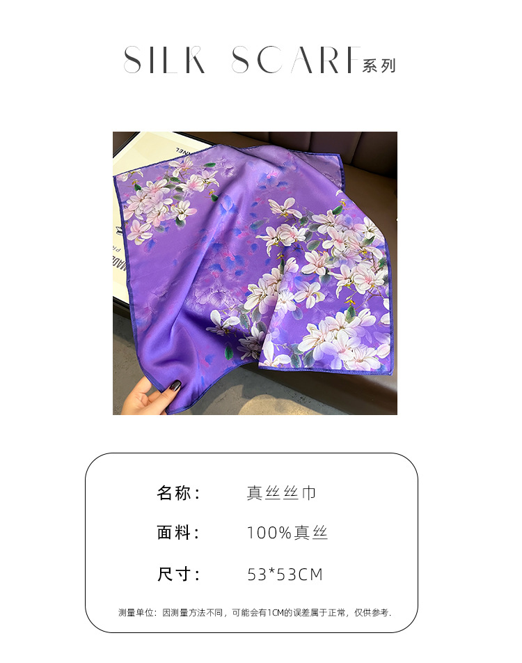 항주 실크 여성 한국 스타일 로맨틱 보라색 인쇄 실크 스카프 100% 뽕나무 실크 스카프 얇은 장식 스카프스토어 가기