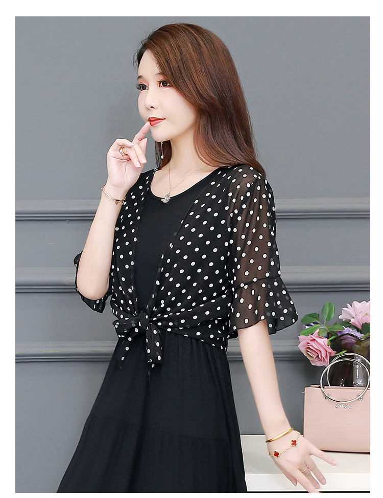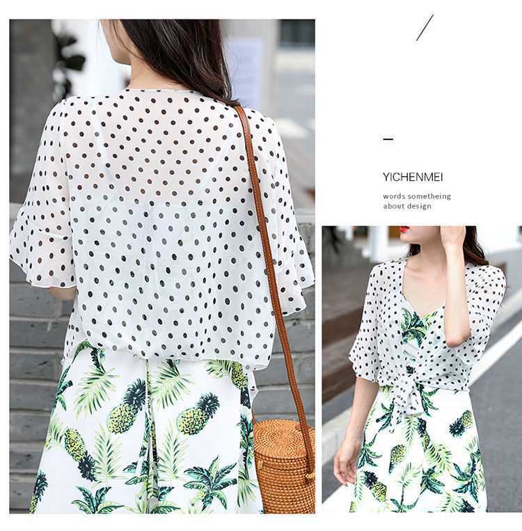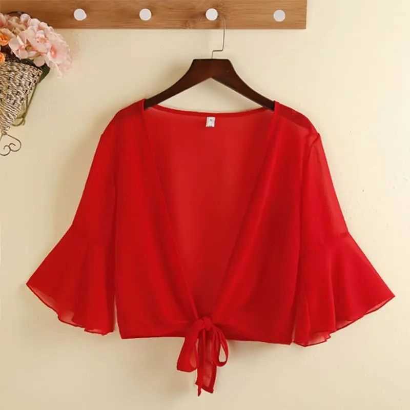 2023 반소매 뿔 소매 작은 목도리 얇은 작은 코트 여성용 선 스크린 의류 짧은 허리 코트 쉬폰 카디건스토어 가기