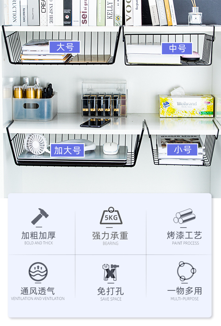 기숙사 보관 선반 책상 보관 테이블 교수형 바구니 옷 주방 계층화 된 보관 기숙사 주방 교수형 바구니 무료 배송