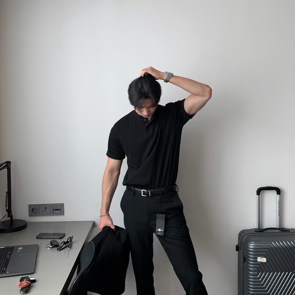 아메리칸 스타일 레트로 헤비 웨이트 반팔 티셔츠 남성용 폴로 셔츠 성숙하고 꾸준한 타이트 커프 피트니스 터프 가이 헨리 셔츠스토어 가기
