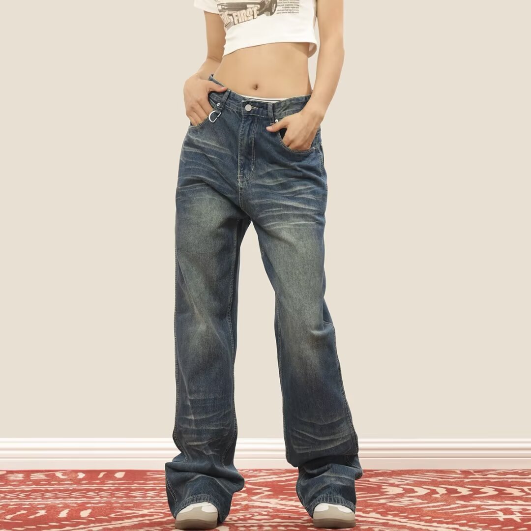 고민 레트로 청바지 새로운 유행 미국 패션 폭발 유행 남성과 여성 한국 스타일 스트레이트 다리 바지 넓은 다리 바지스토어 가기