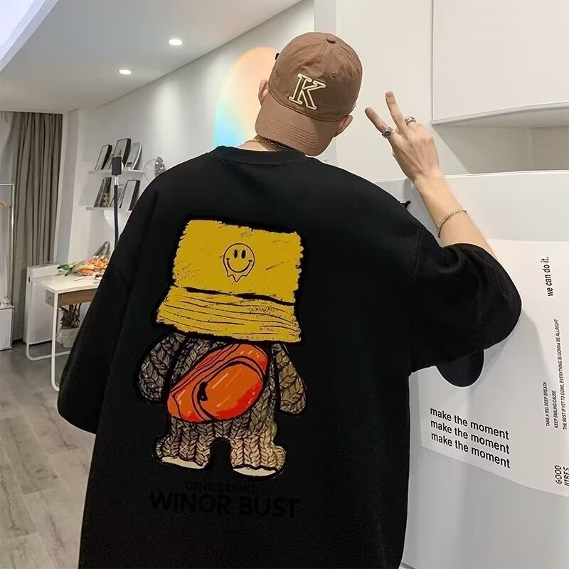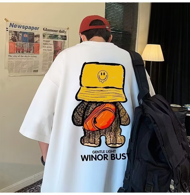 트렌디 한 브랜드 베어 프린트 반팔 티셔츠 남성 여름 2023 새로운 커플 디자인 센스 니쉬 반소매 티셔츠 옷스토어 가기