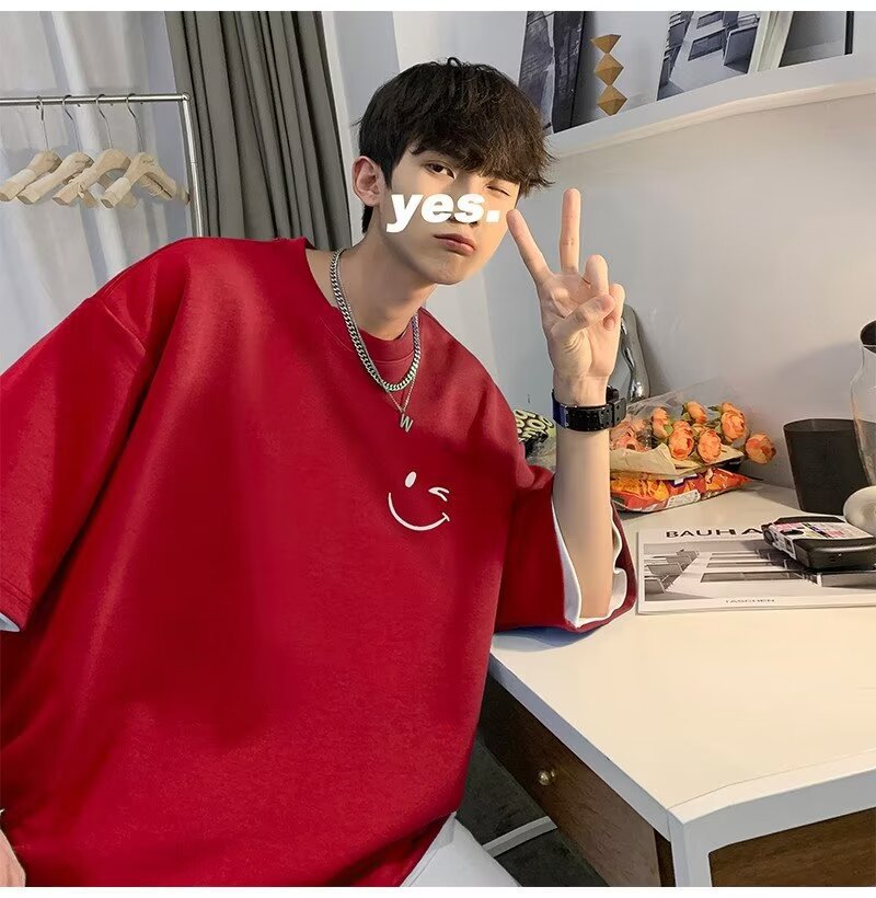 홍콩 스타일 티셔츠 남성 반팔 2024 뉴 여름 느슨한 5 점 중소매 티셔츠 탑 의류 반소매 트렌디 브랜드