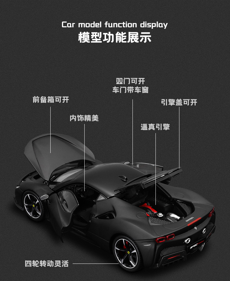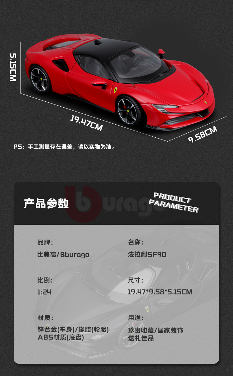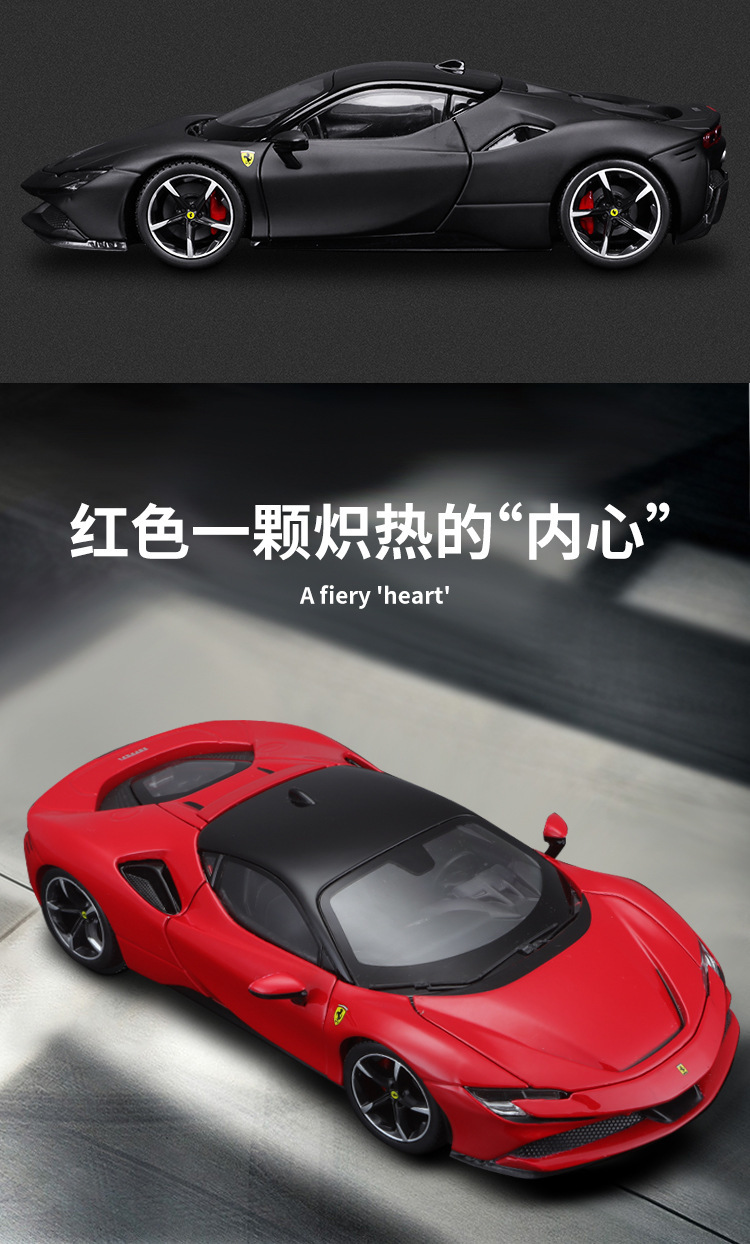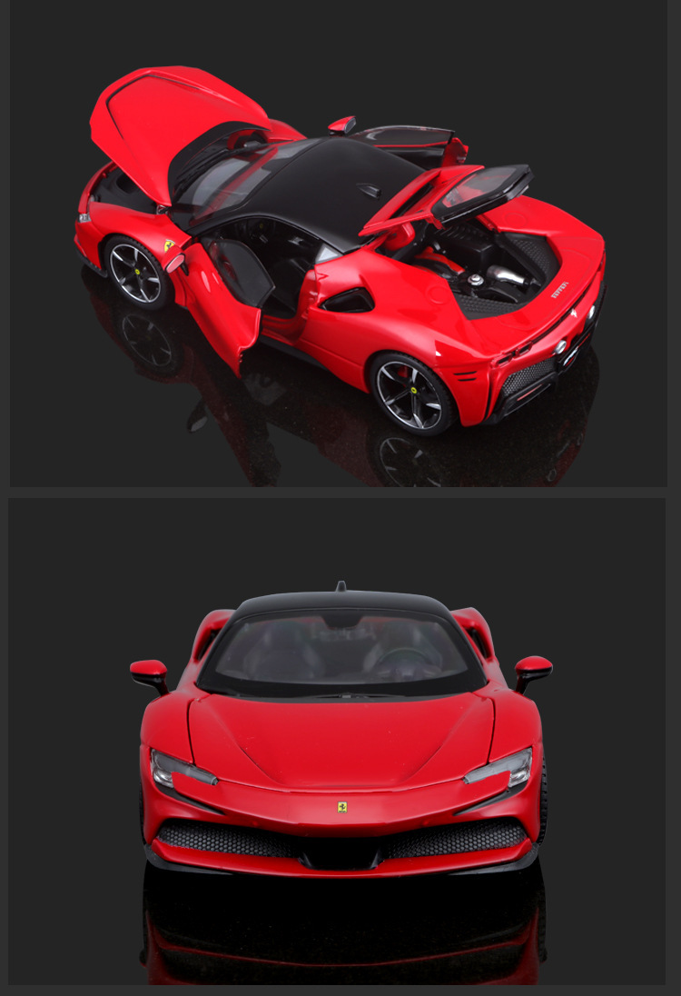 비메이 하이 1:24 페라리 SF90 자동차 모델 시뮬레이션 합금 럭셔리카 로고 자동차 모델 소년 장난감 컬렉션 장식품스토어 가기