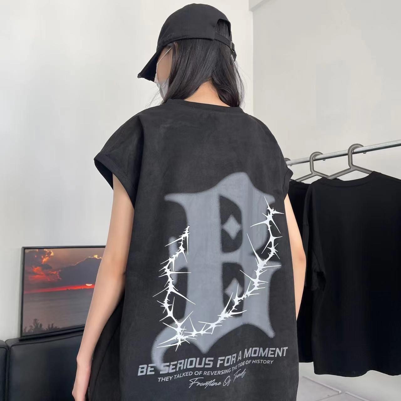 카키 스웨이드 조끼 남자 여름 오버 사이즈 헤비 트렌디 브랜드 웨이스트 코트 민소매 티셔츠 아메리칸 커플 스웨트 셔츠