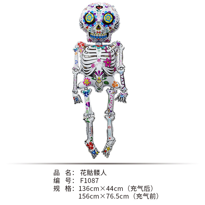 국경 새로운 할로윈 꽃 두개골 남자 풍선 알루미늄 해골 모양 풍선 장소 파티 장면 레이아웃