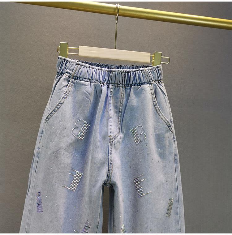 패션 청바지 여성 트렌디 2024 봄과 여름 유럽 역 느슨한 슬리밍 세련된 허리 컬러 핫 라인스톤 바지스토어 가기