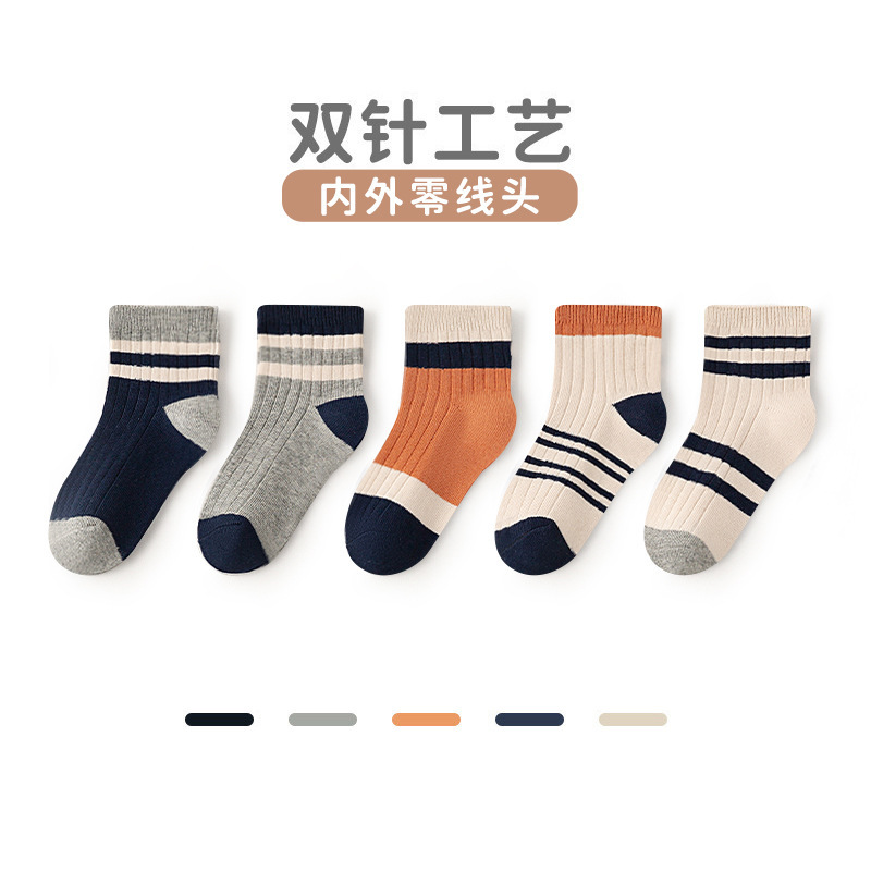 25 봄과 여름 어린이 양말 소년과 소녀 더블 바늘 어린이 양말 미드 튜브 보트 양말 스트라이프 코튼 양말 중형 어린이 미드 튜브 양말