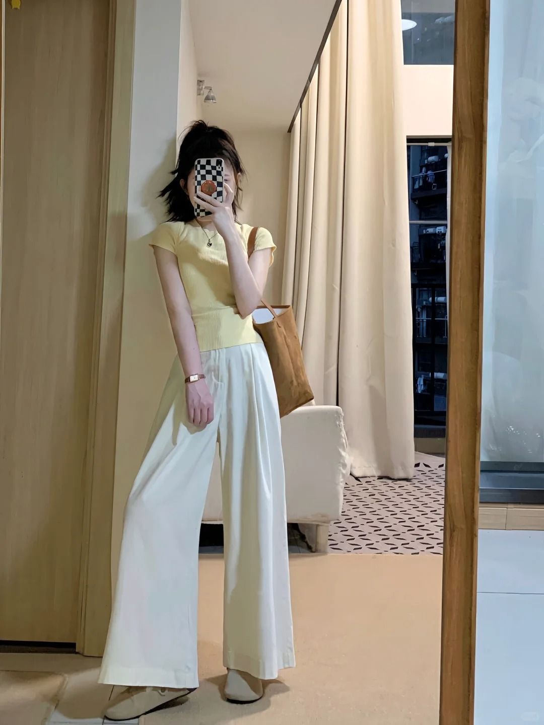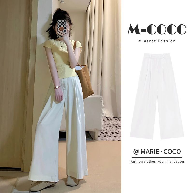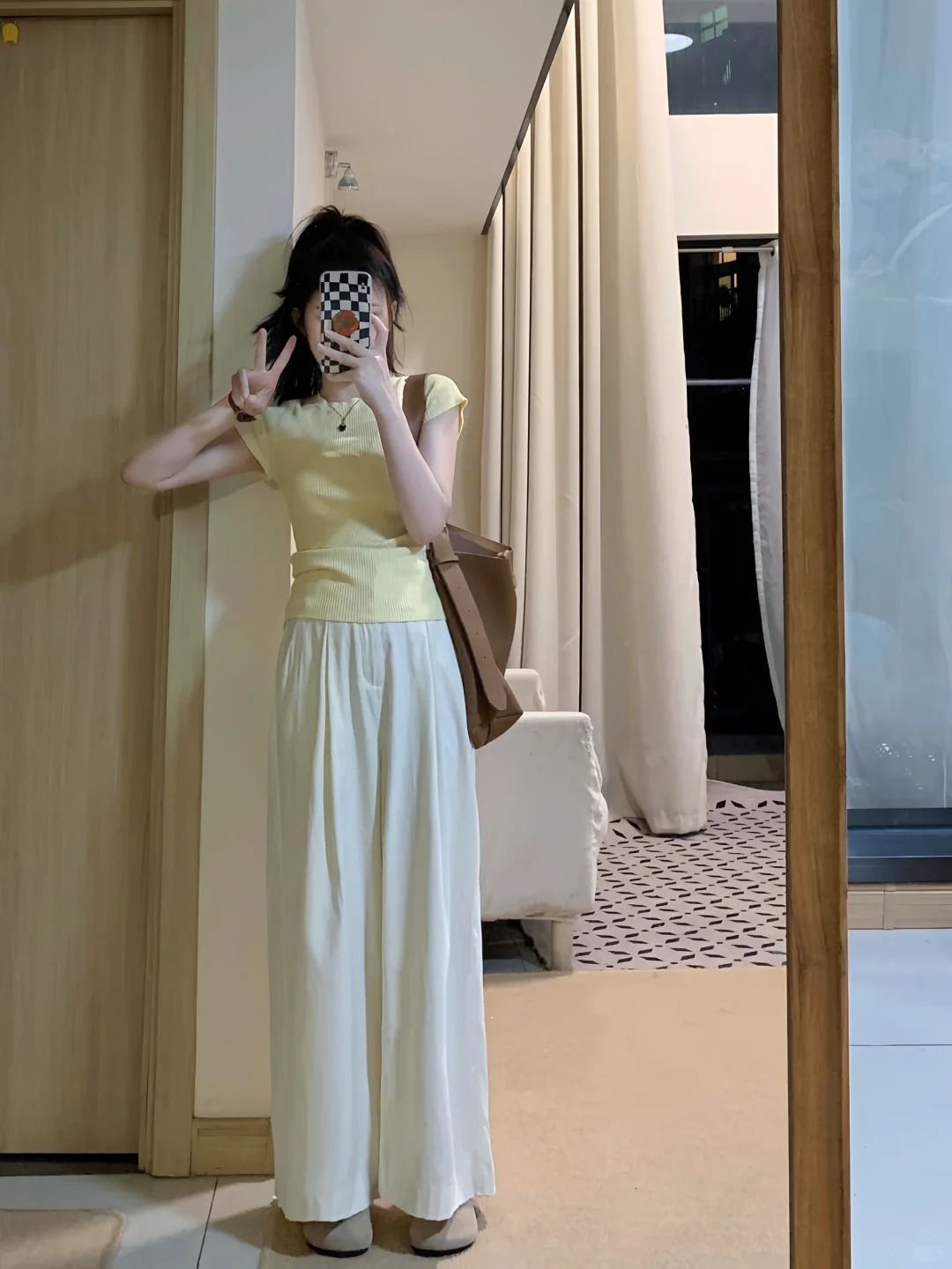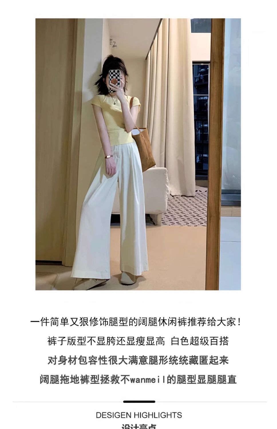 화이트 텐셀 리넨 캐주얼 바지 여성용 얇은 여름면 및 린넨 세트 바지 높은 허리 스트레이트 와이드 다리 바지스토어 가기