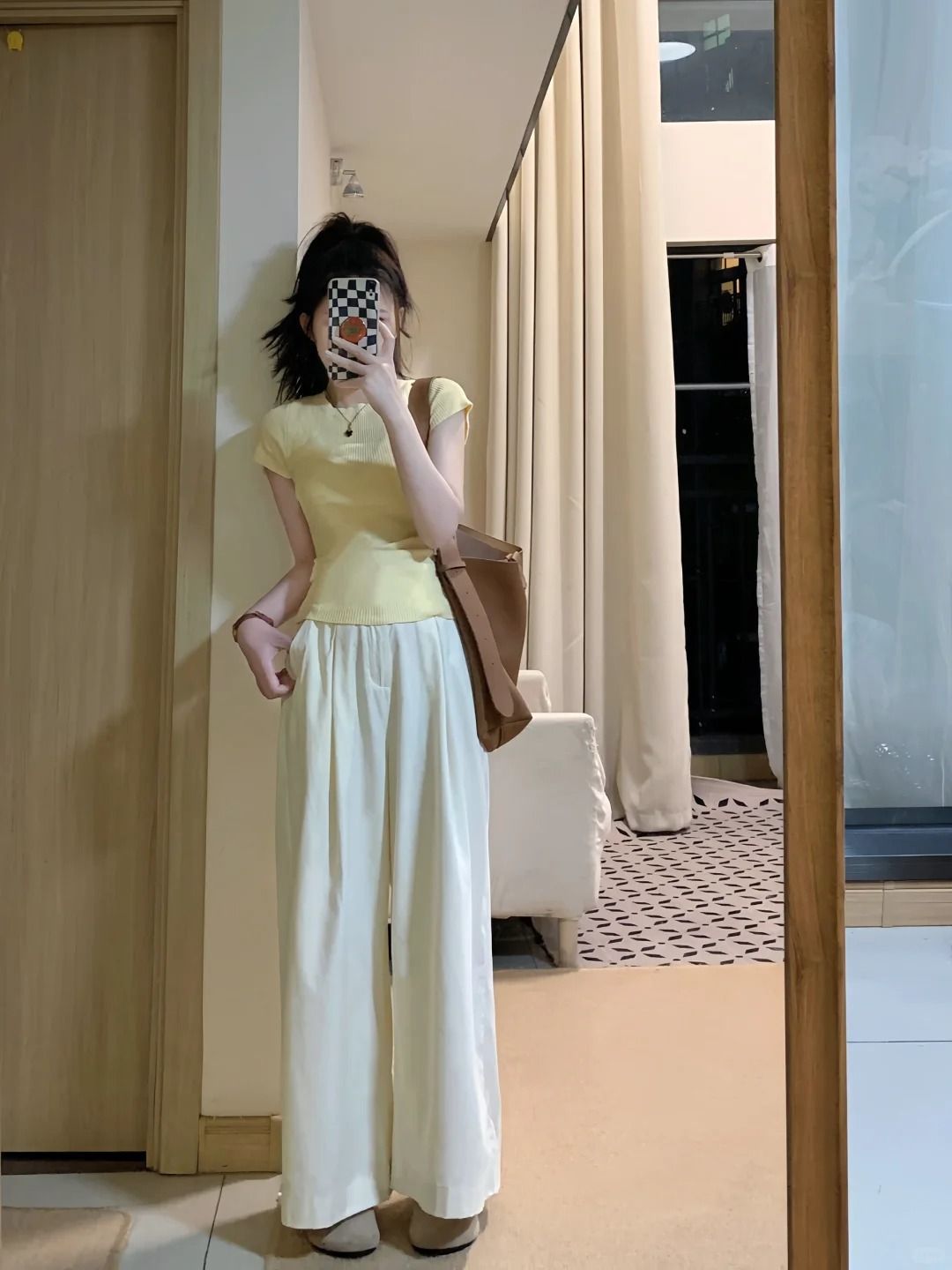 화이트 텐셀 리넨 캐주얼 바지 여성용 얇은 여름면 및 린넨 세트 바지 높은 허리 스트레이트 와이드 다리 바지