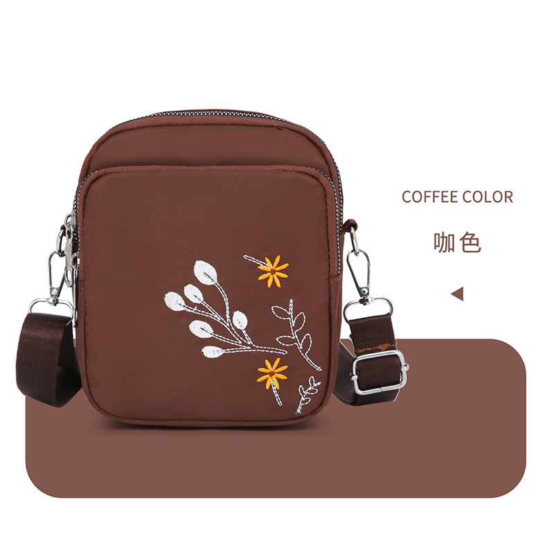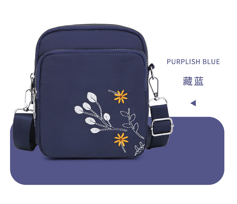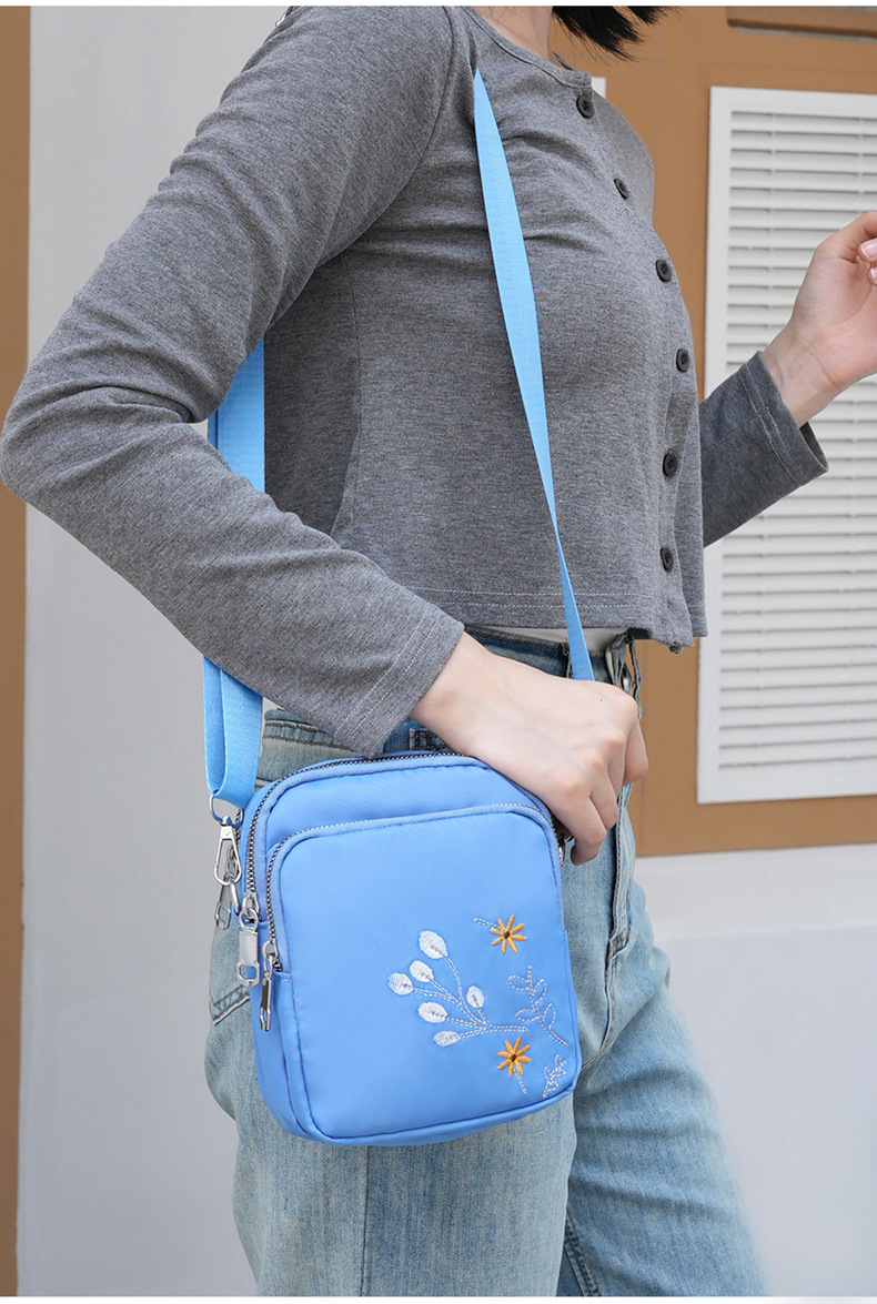 여성용 가방 새로운 휴대 전화 가방 나일론 헝겊 크로스 바디 백 멀티 레이어 캐주얼 가방 세련된 배낭 유행 자수 어깨 가방