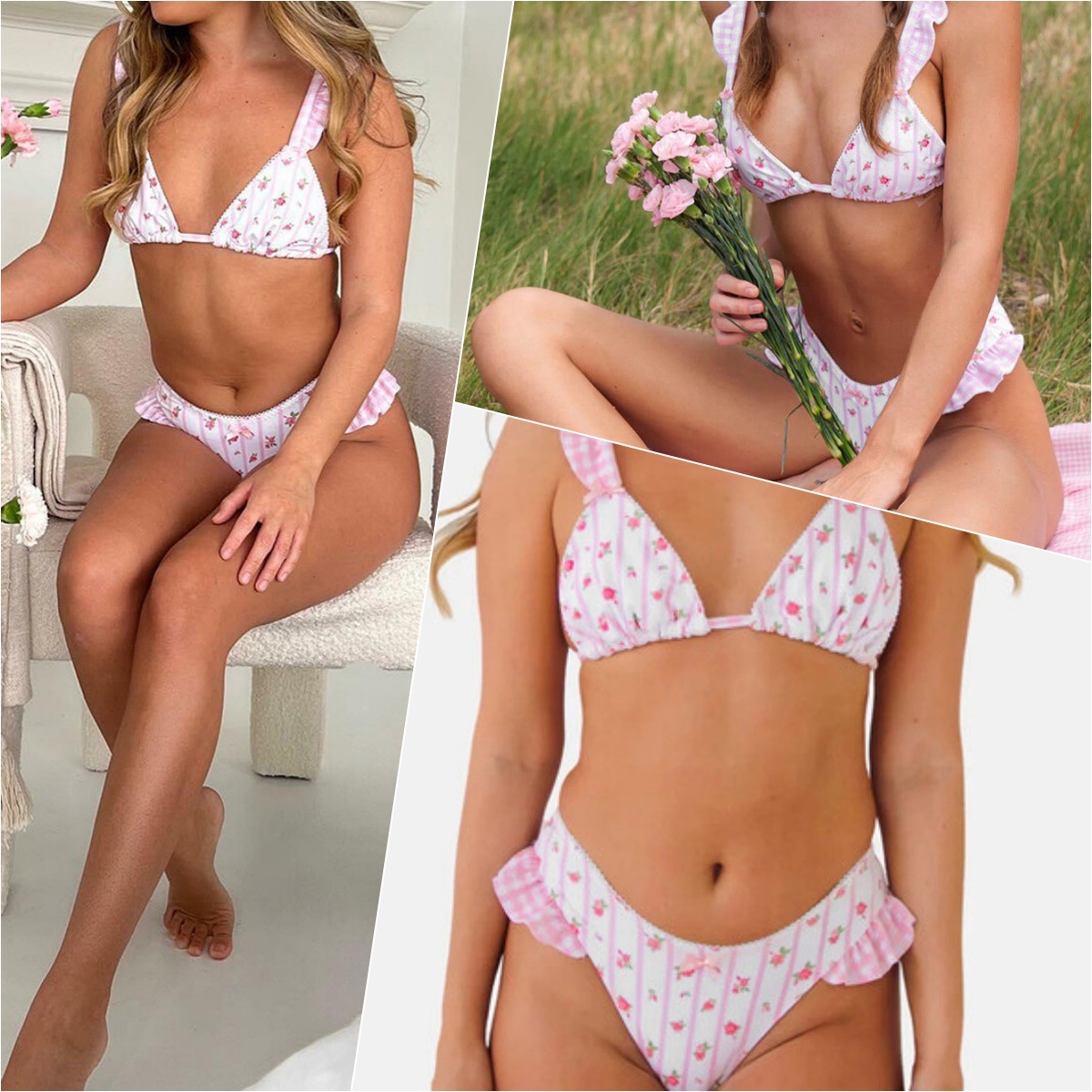 2024 비키니 스플릿 수영복 여성 섹시 러플 스트랩 수영복 투피스 세트 유럽과 미국의 대외 무역스토어 가기