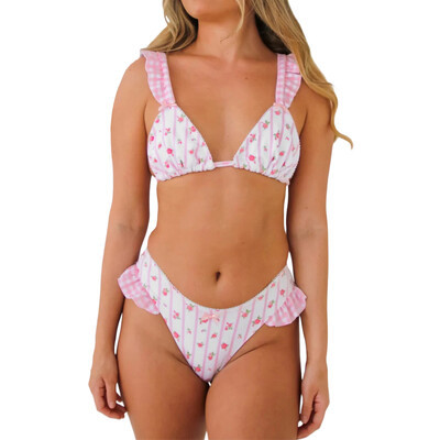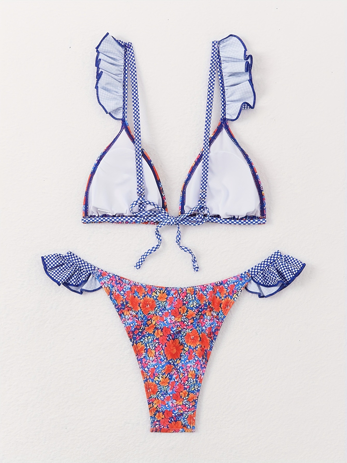 2024 비키니 스플릿 수영복 여성 섹시 러플 스트랩 수영복 투피스 세트 유럽과 미국의 대외 무역