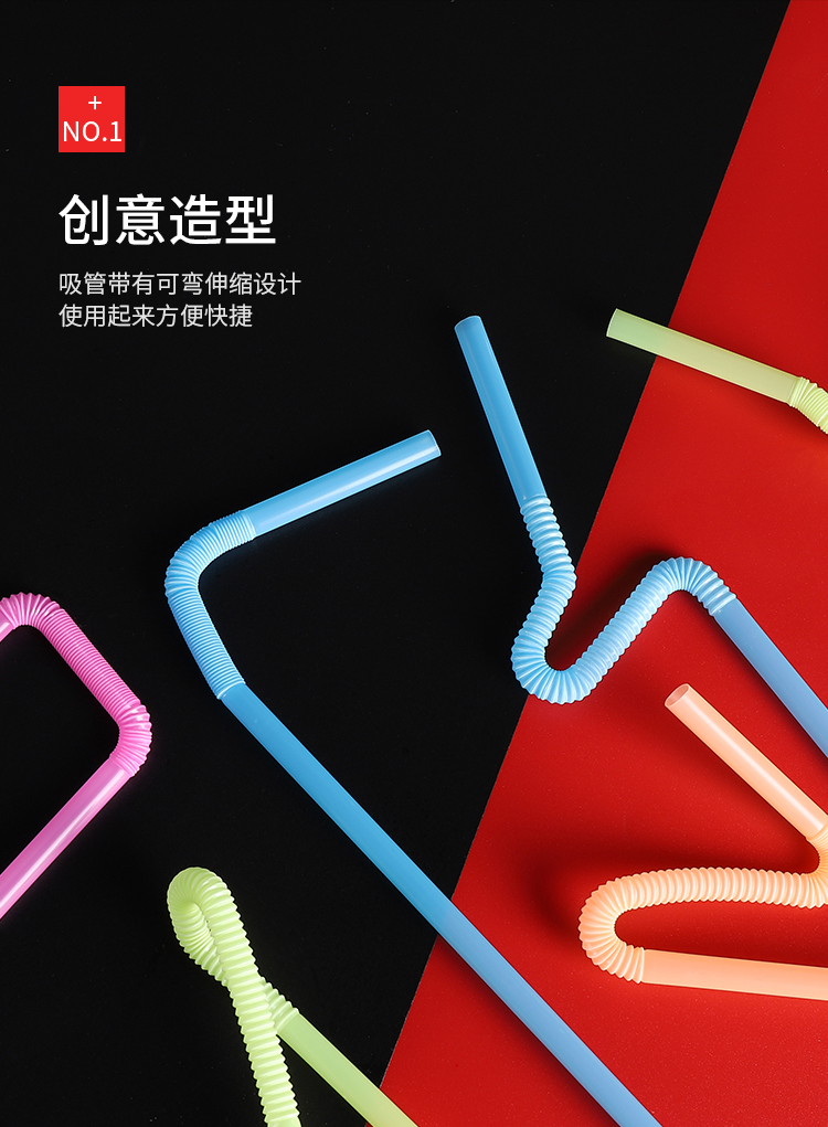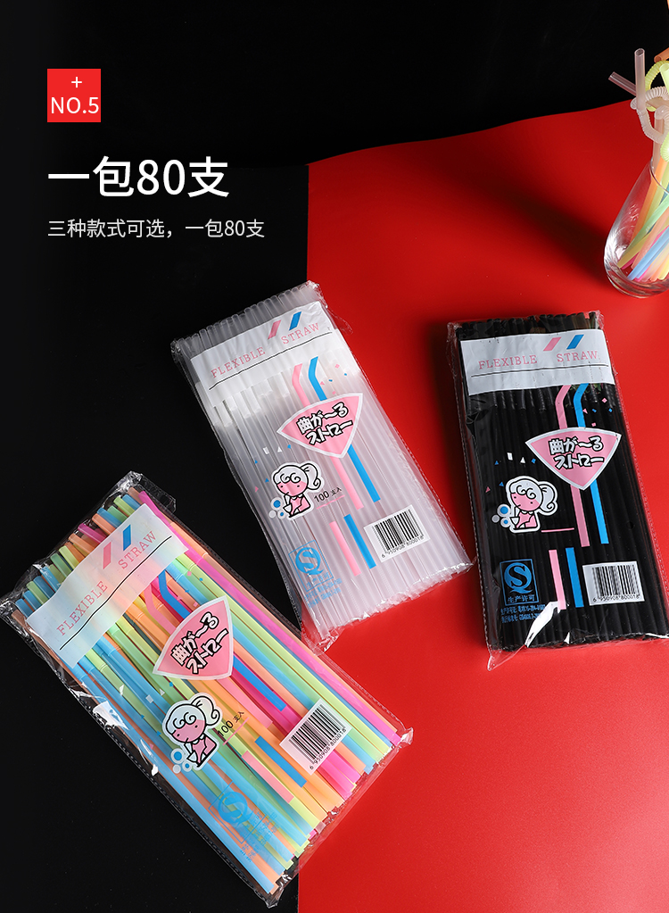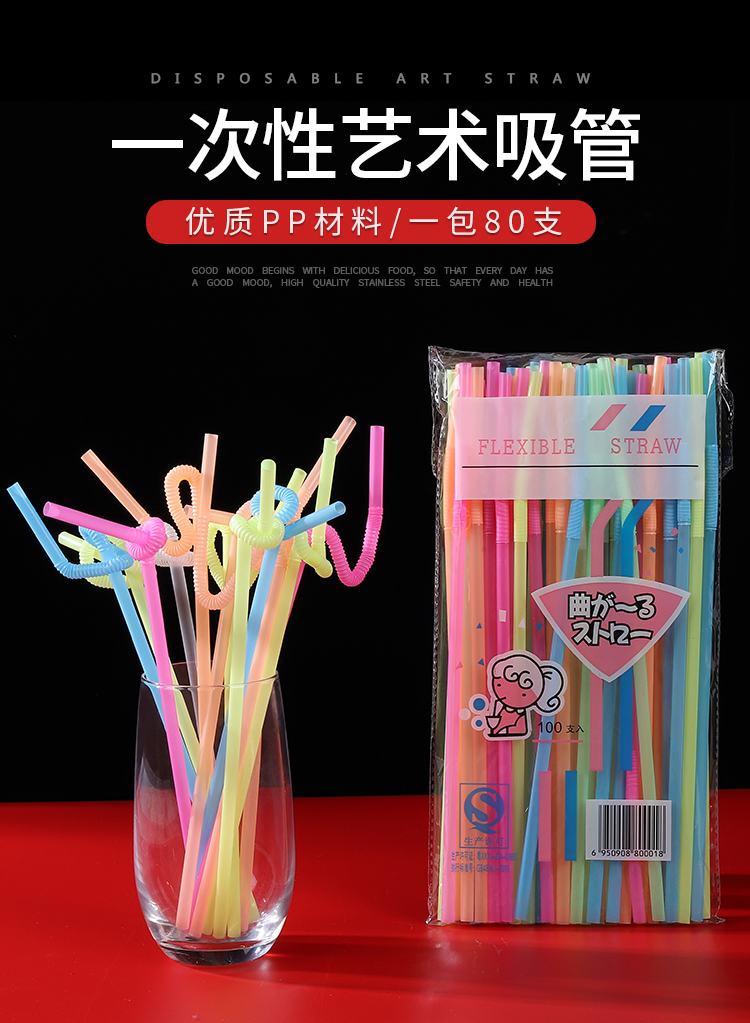일회용 고급 밀짚 아트 컬러 우유 차 주스 음료 콩 우유 구부릴 수있는 창조적 인 플라스틱 긴 밀짚 상업스토어 가기