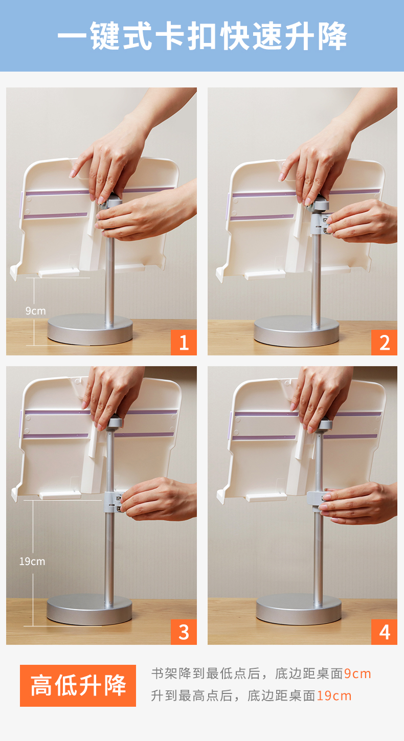 성인, 학생 및 어린이를위한 다기능 조정 가능한 리프팅 헤드 업 독서 책장 책장 책장 책장 휴대용 데스크톱 읽기