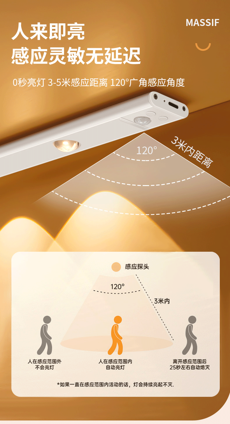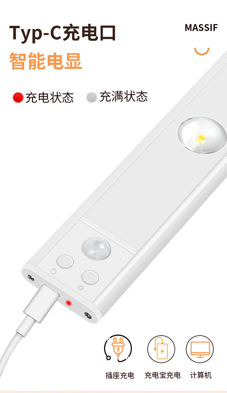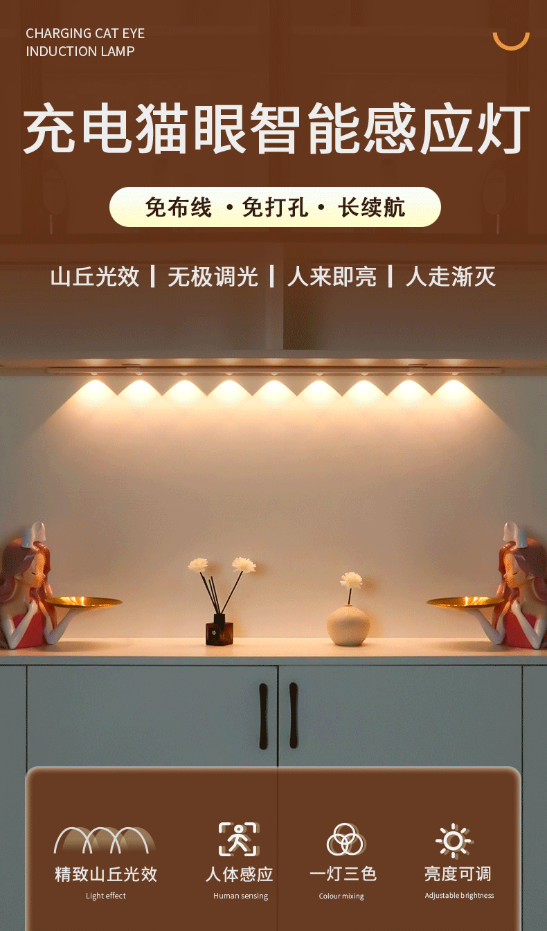 LED 충전식 인체 감지등 자동 감지등 가정 분위기 고양이 눈등 자기 부착 캐비닛등