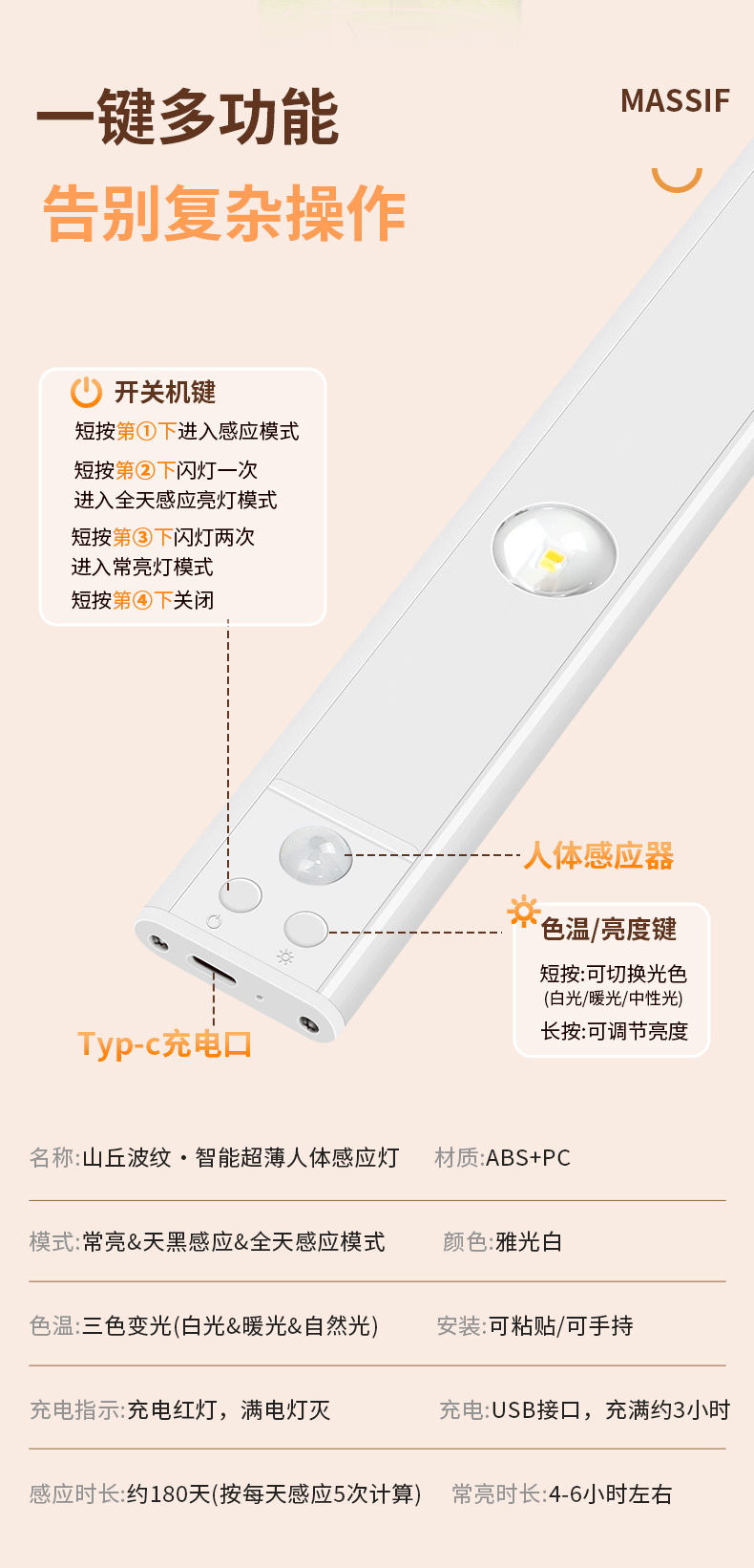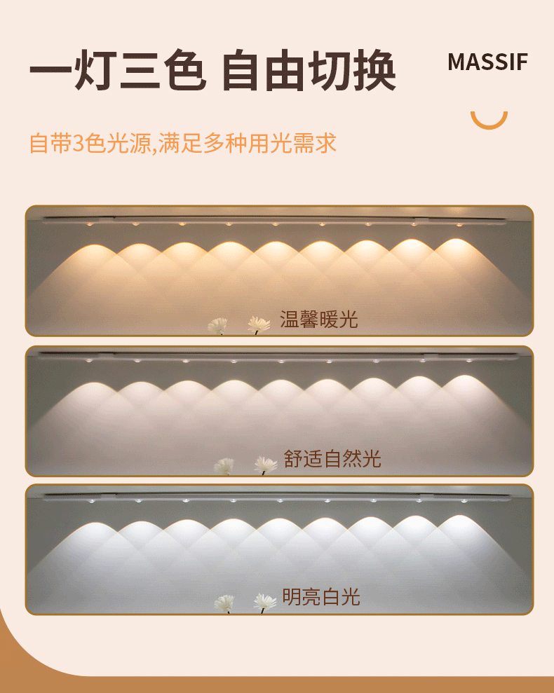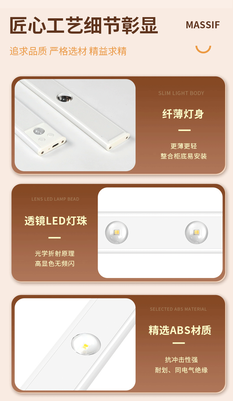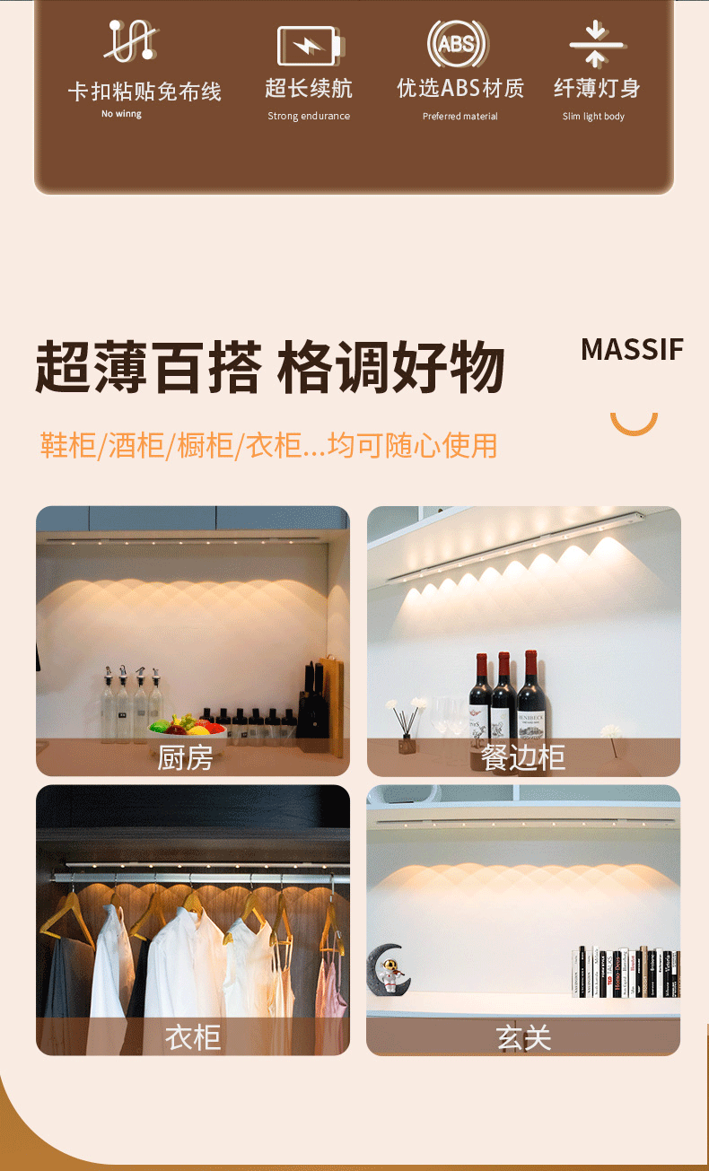 LED 충전식 인체 감지등 자동 감지등 가정 분위기 고양이 눈등 자기 부착 캐비닛등