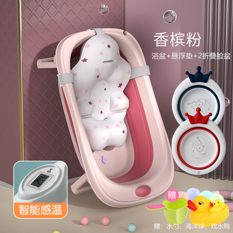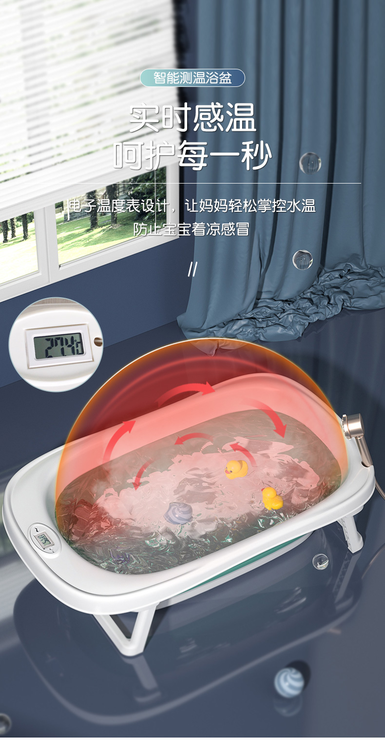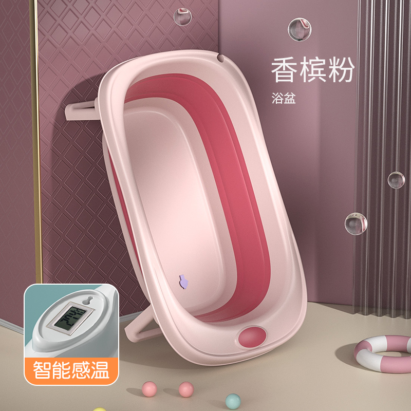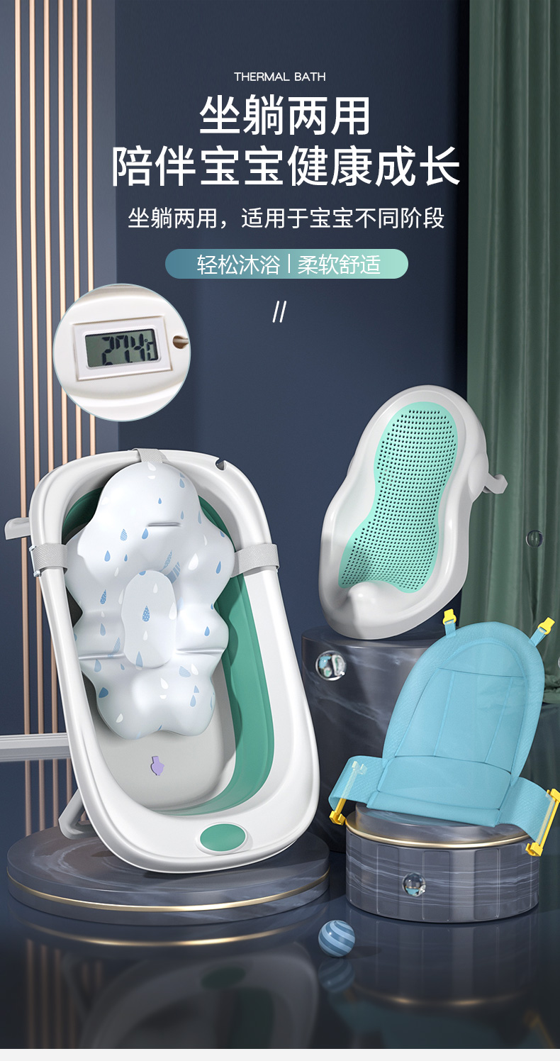 아기 욕조 아기 욕조 신생아 어린이 접이식 가구 앉아 있고 온도계가 달린 목욕 양동이