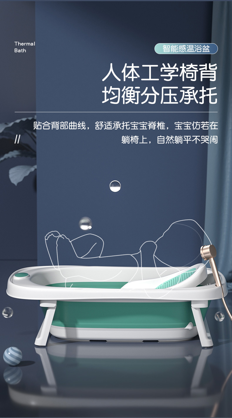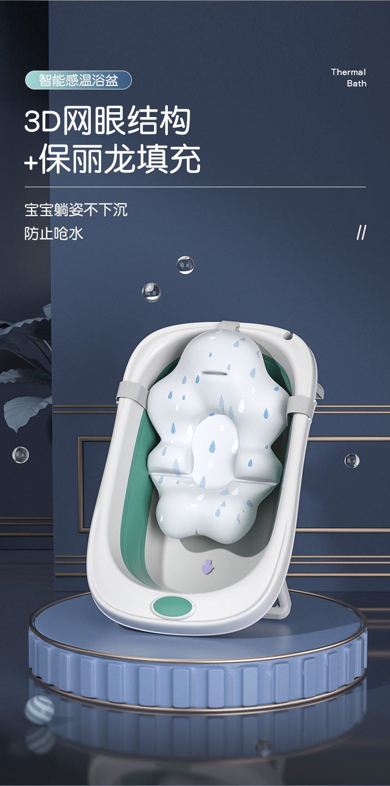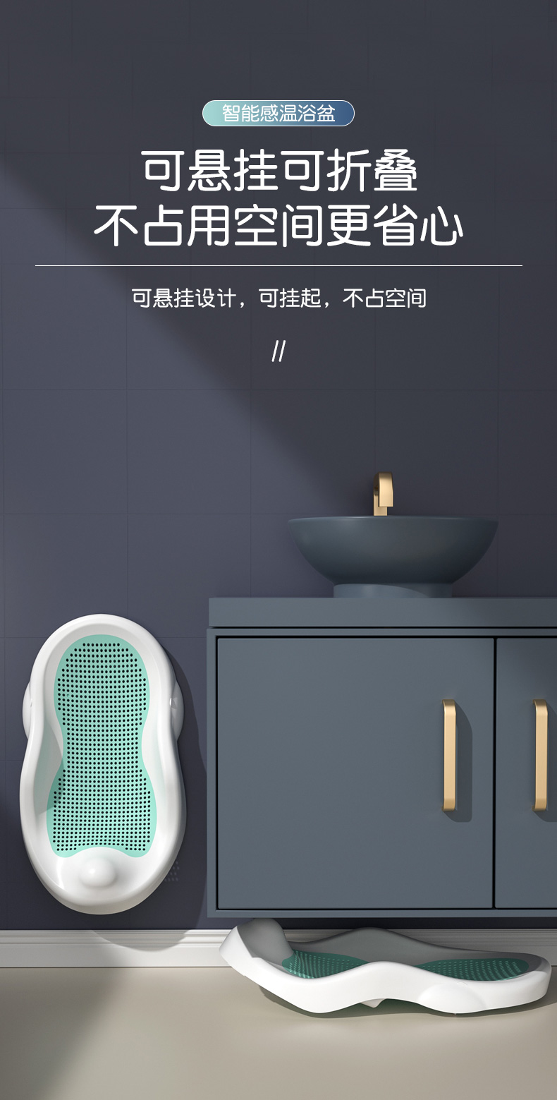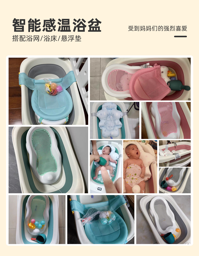 아기 욕조 아기 욕조 신생아 어린이 접이식 가구 앉아 있고 온도계가 달린 목욕 양동이