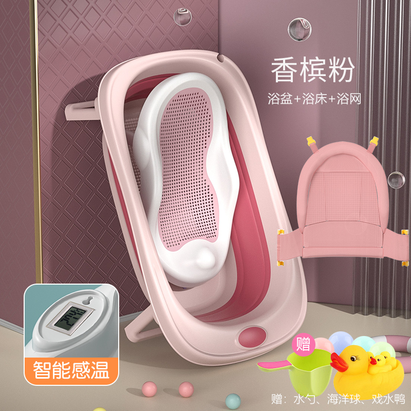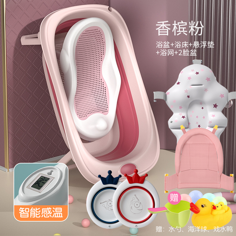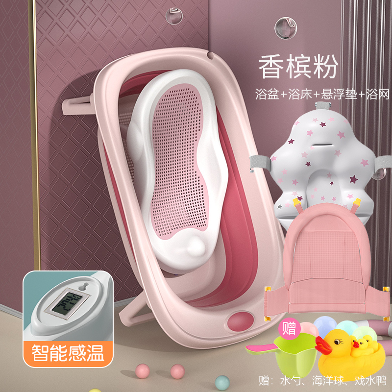 • [온도 감지 모델] 핑크 세면대 + 목욕 침대 + 매달린 매트 + 목욕 그물 (선물 패키지) + 80% off 페이스 스택