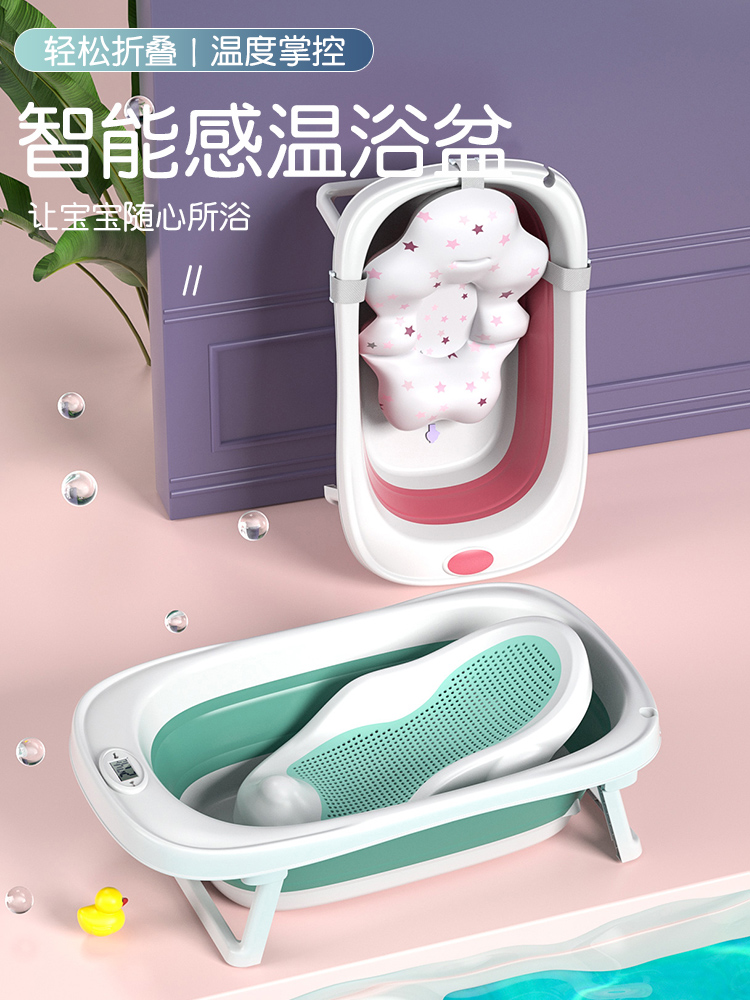 아기 욕조 아기 욕조 신생아 어린이 접이식 가구 앉아 있고 온도계가 달린 목욕 양동이스토어 가기