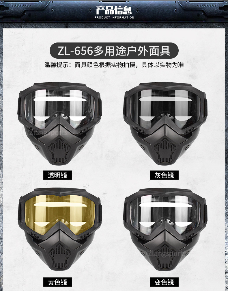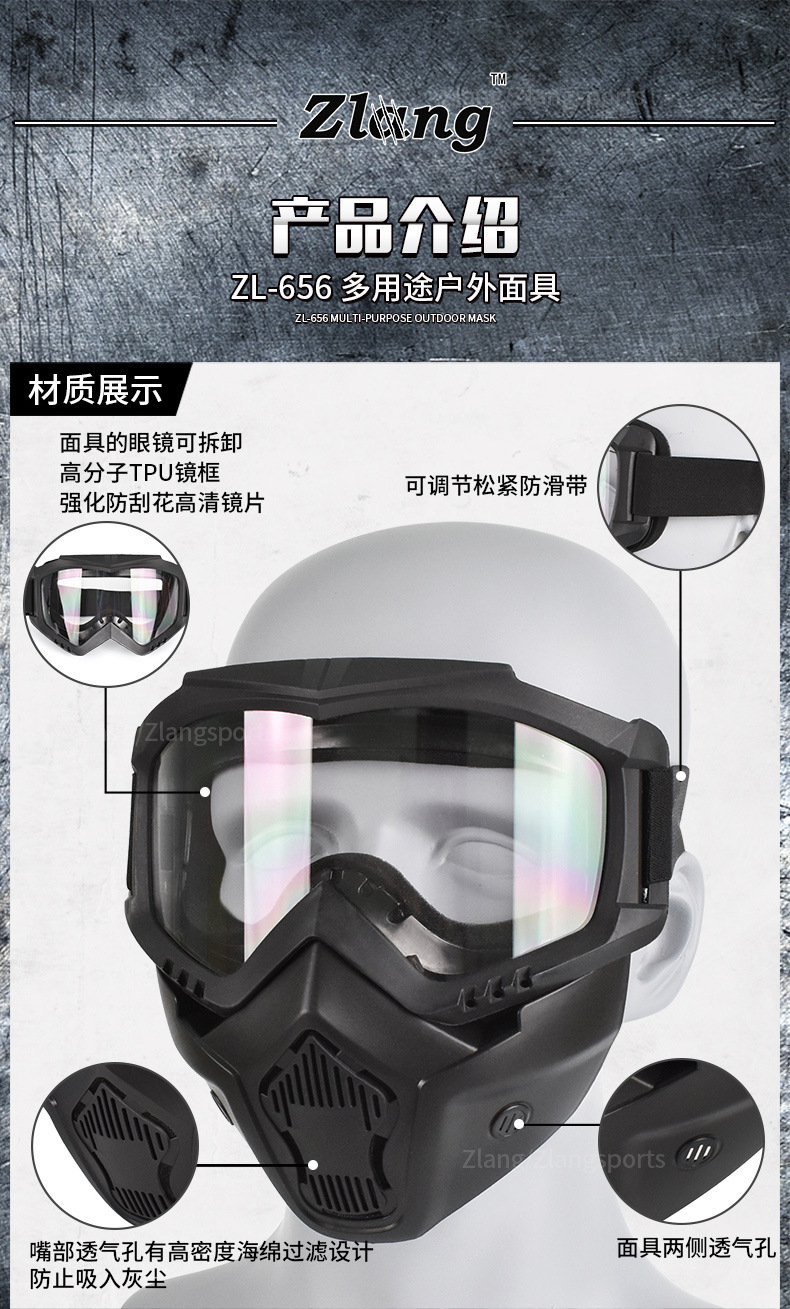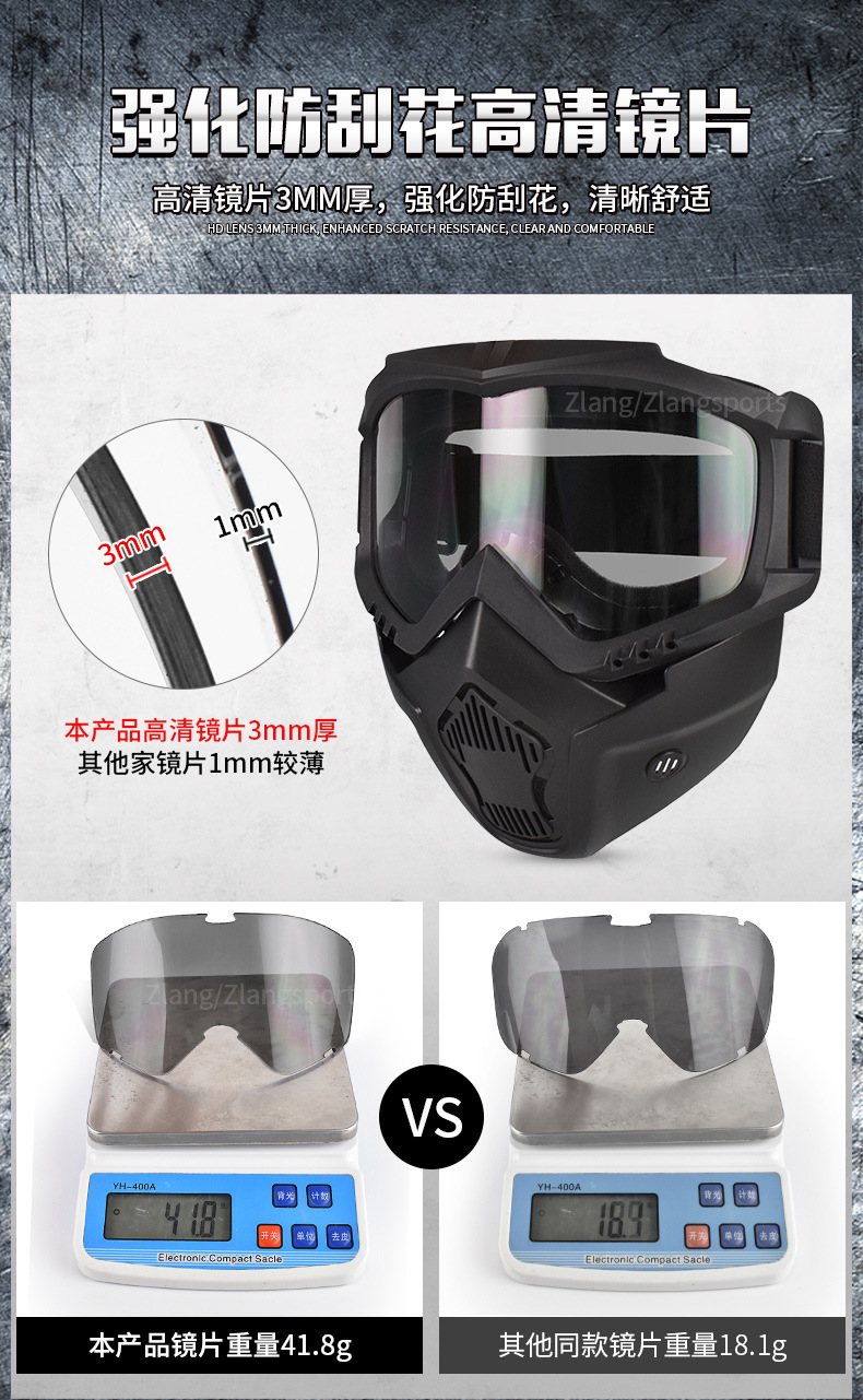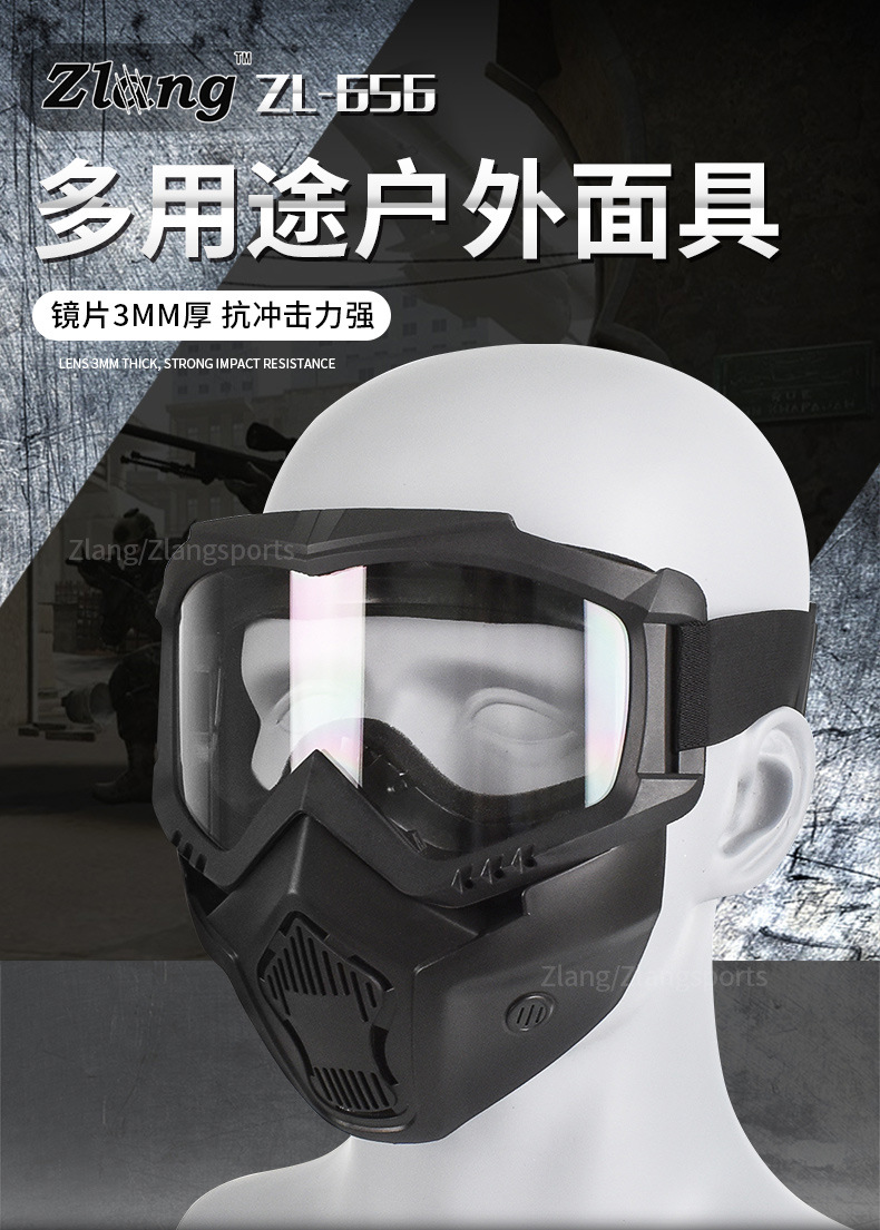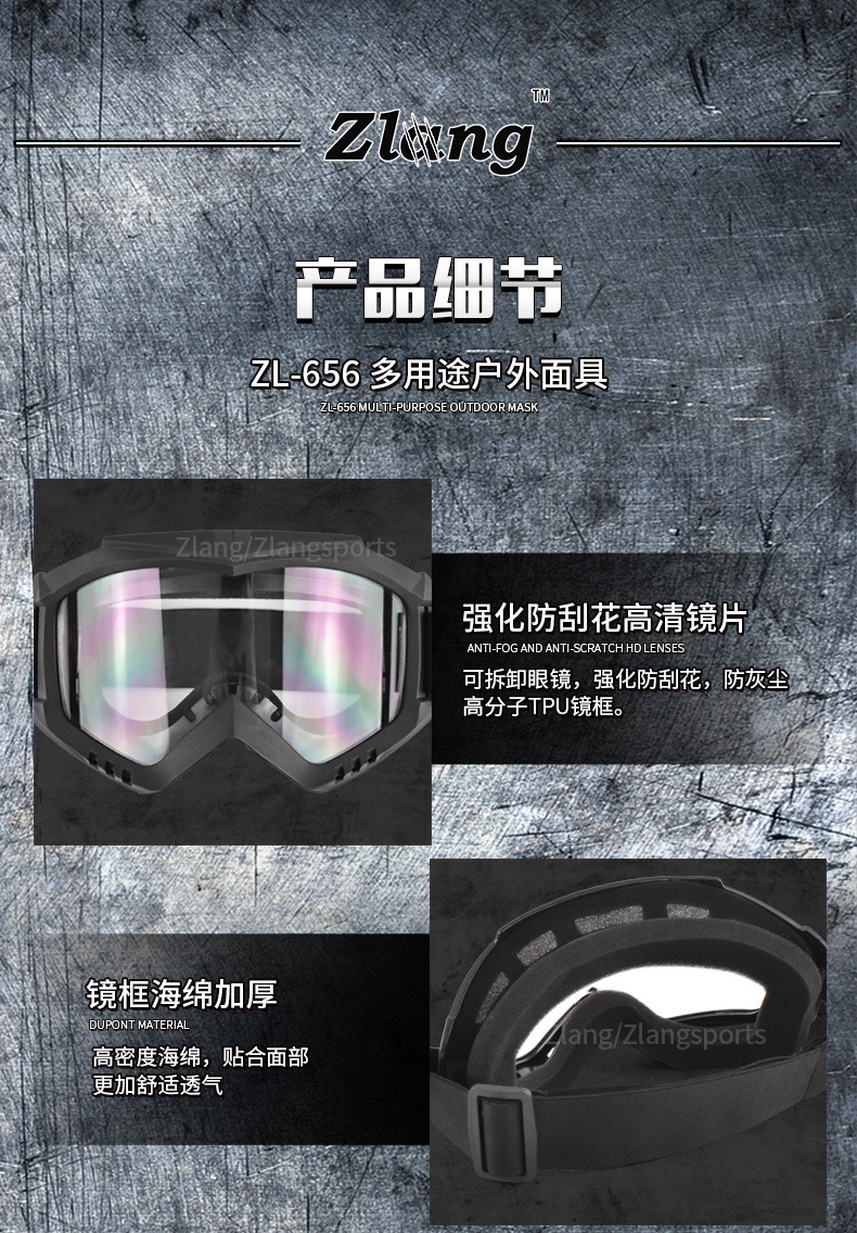 Zlang 전술 마스크 야외 승마 크로스 컨트리 스키 고글 마스크 렌즈 3mm 야외 CS 보호 장비