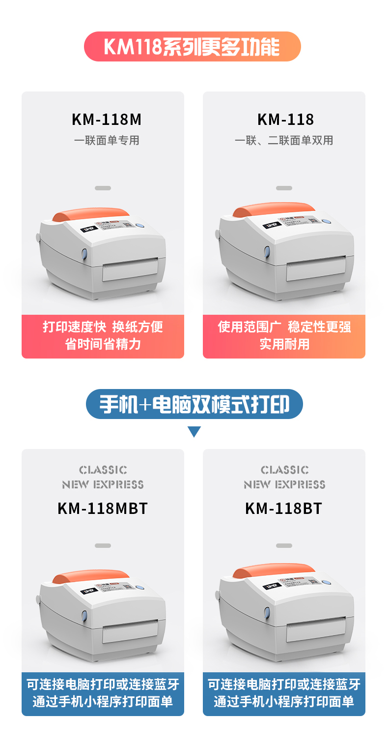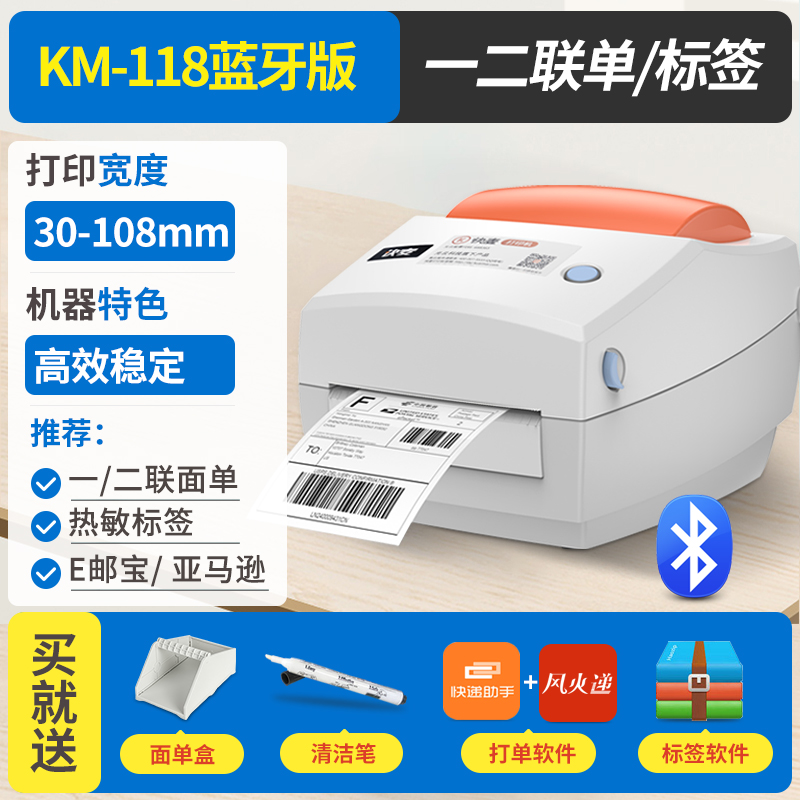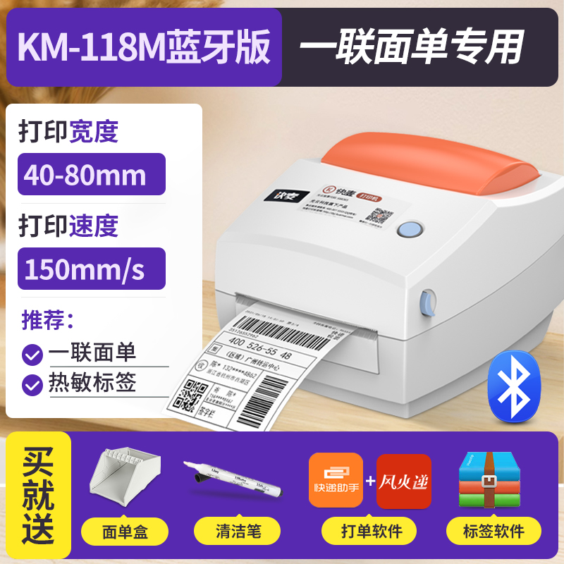 KM118 열 바코드 스티커 프린터 단일 전자 얼굴 단일 프린터 블루투스 스티커