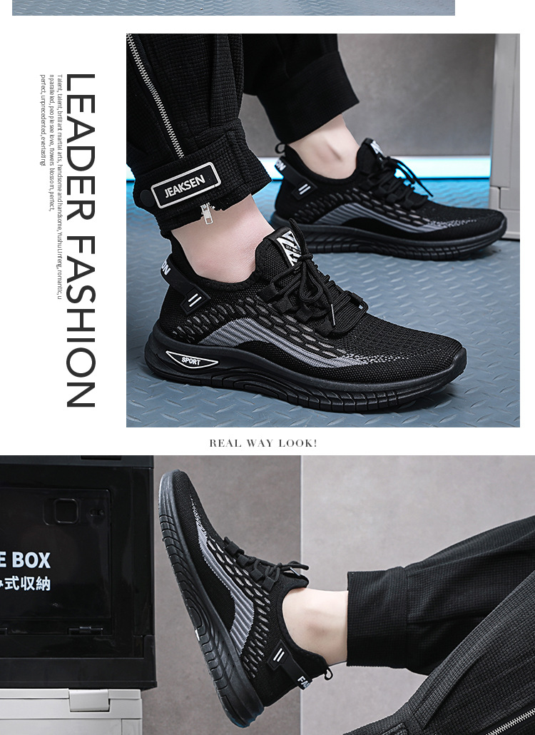 남성용 신발 플러스 사이즈 여름 비행 직조 메쉬 표면 통기성 운동화 야외 올 매치 남성용 신발 소프트 솔과 한국식 런닝 슈즈