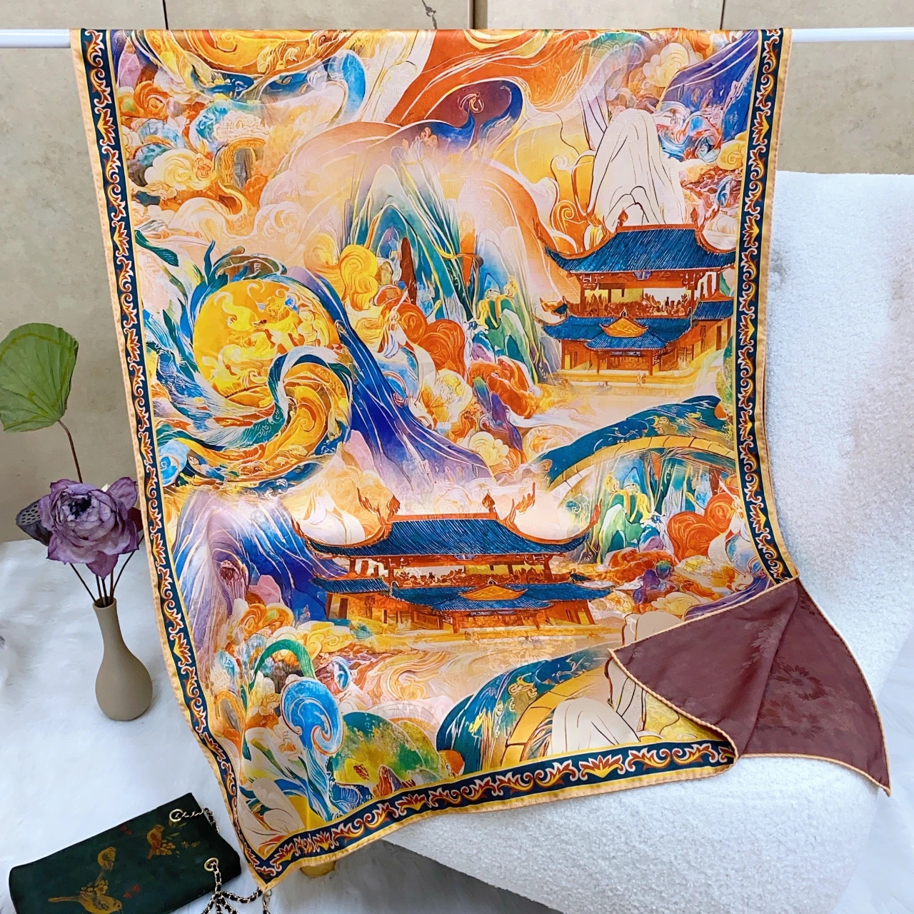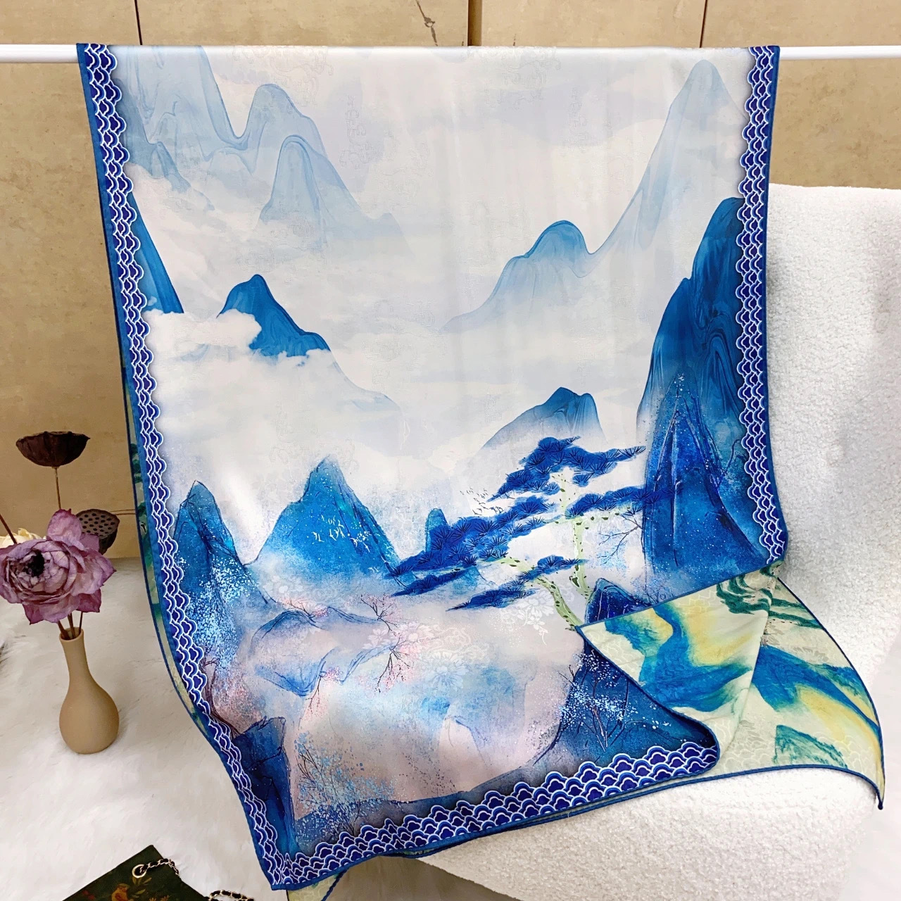 항주 실크 샹윤 원사 실크 스카프 2 색 양면 인쇄 스카프 수제 컬 한 여성용 숄 중국 스타일 선물 기부