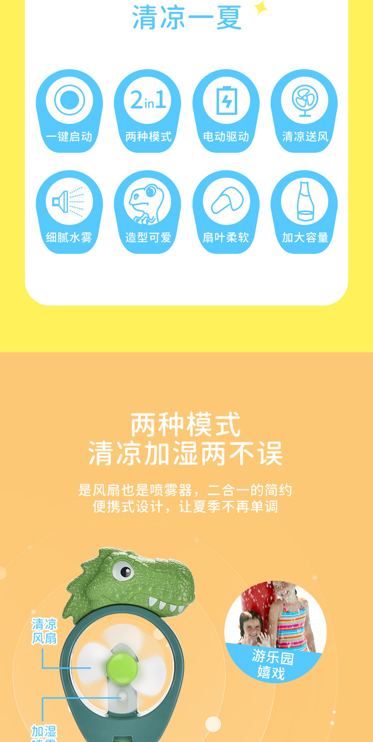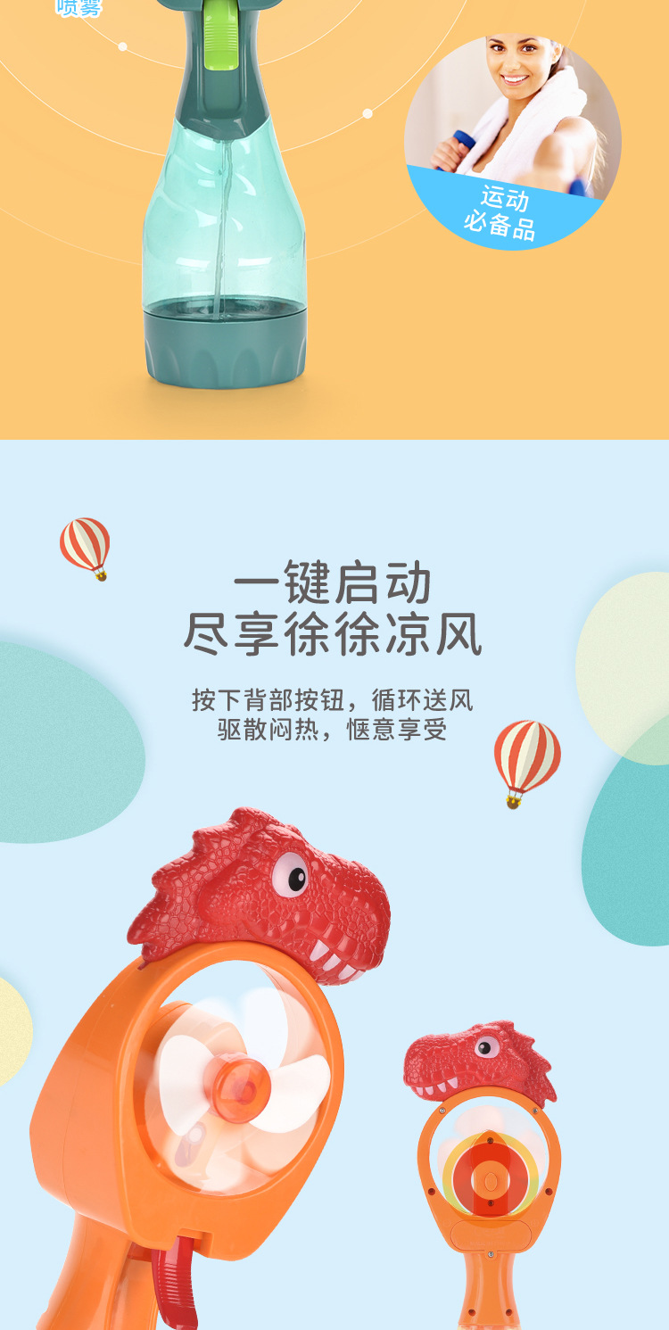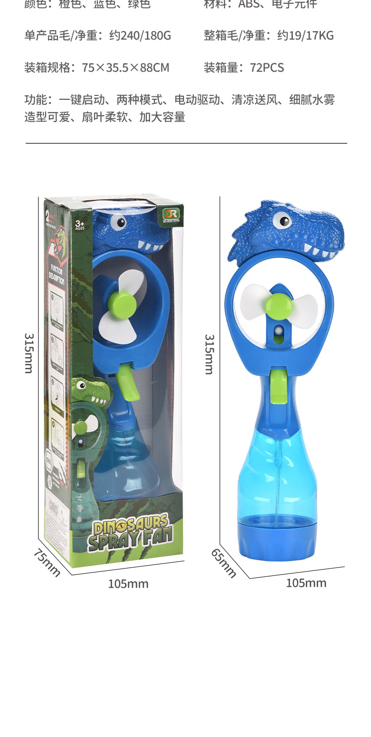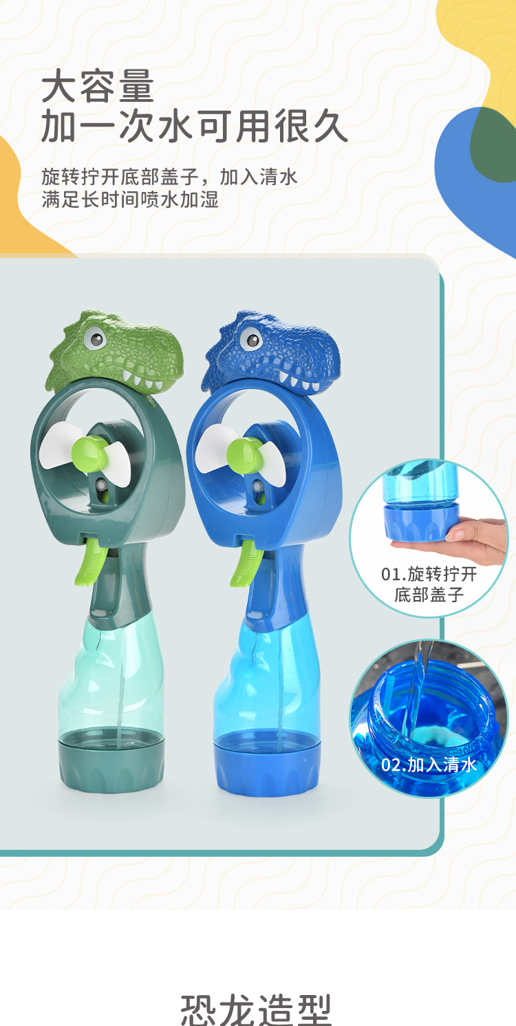 국경 간 새로운 아마존 전기 공룡 스프레이 팬 장난감 휴대용 가습 및 물 보충 대용량 휴대용 바람