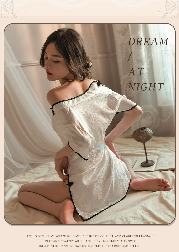 밀짚 소녀 스탠드 칼라 개선 치파오 섹시한 란제리 레트로 자카드 플레이트 버클 슬릿 여성 고대 스타일 잠옷 1037